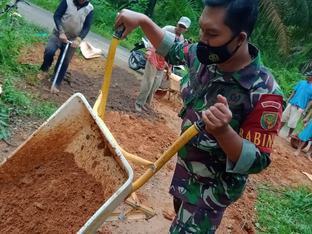 Babinsa Dan Warga Kompak Kerja Bakti (Gotong Royong)Membuat Jalan Setapak