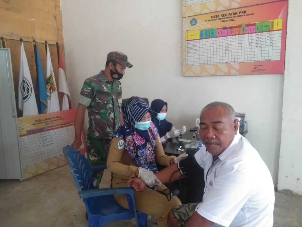 Lensa Garuda,Muratara : Babinsa Karang Dapo Koramil 406-02/Rawas Ilir Serda Eko Supriyanto melakukan kegiatan pendampingan Vaksinasi buat warga masyarakat di Puskesmas Karang Dapo Desa Aringin kec Rawas Ilir kabupaten Muratara, Selasa (21/12/2021).
