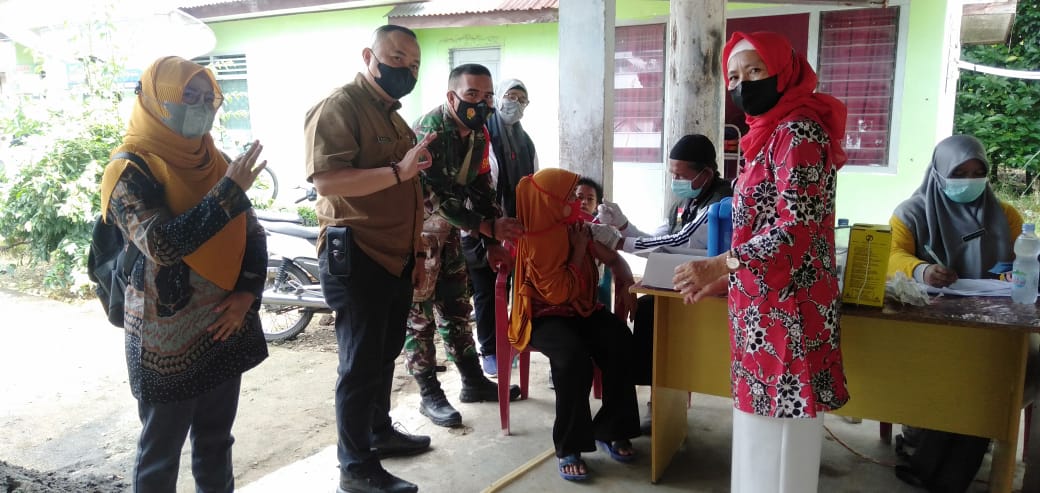 Selain itu Camat sumberharta Hadir dalam kegiatan vaksin guna memberikan Bingkisan bagi warga yang sudah di Vaksin, Kasi trantib dan Kades Suka Mulya.(Pendim 0406/LLG).