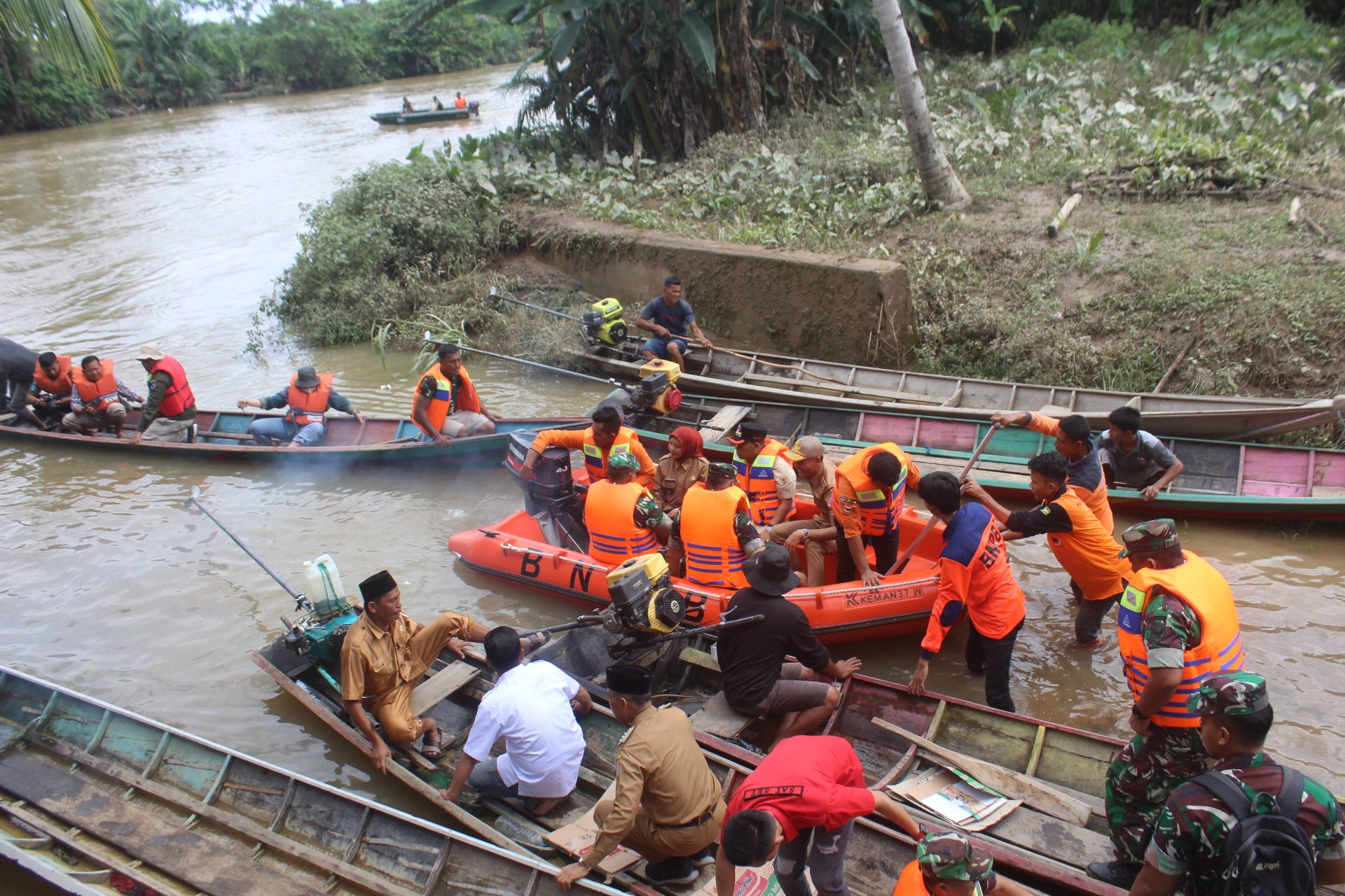 Lensa Garuda- Musi Rawas Utara. Komandan Kodim 0406/Lubuk Linggau Letkol Inf Kunto Adi Setiawan S.E.,M.Han dampingi Komandan Korem 044/Gapo Brigjen TNI Muhammad Tohir S.Sos.,M.M. Tinjau Lokasi Banjir di wilayah Musi Rawas Utara yakni di desa Batu Gajah Lama Kecamatan Muara Rupit. Selasa (02/01/2024).