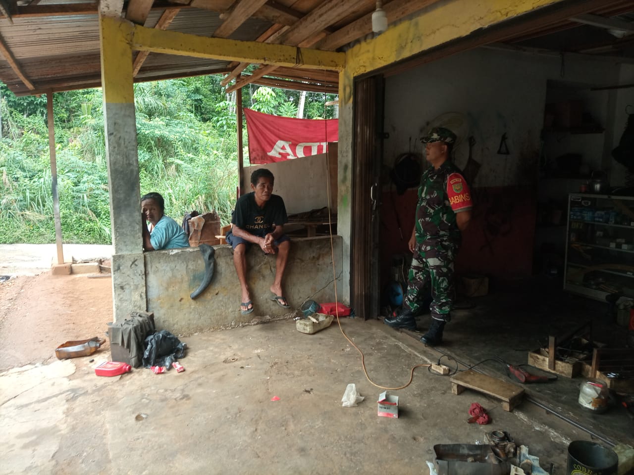 Babinsa Koramil 406-07/Jayaloka koptu Agus susilo Komsos Sambangi Bengkel Sepeda Motor di wilayah binaan
