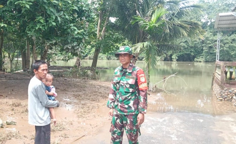 Babinsa Koramil 406-05 Muara Kelingi Pantau Perkembangan Kondisi Banjir Di Wilayah