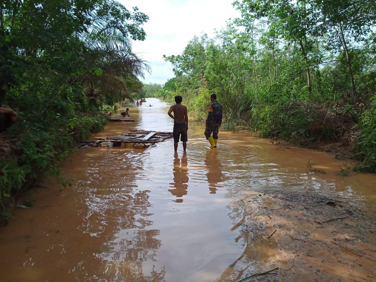Sertu Ali Mubin Babinsa Koramil 406-04/Muara Lakitan Terus Monitoring Banjir Pasca Hujan yg mengguyur kabupaten Musi Rawas