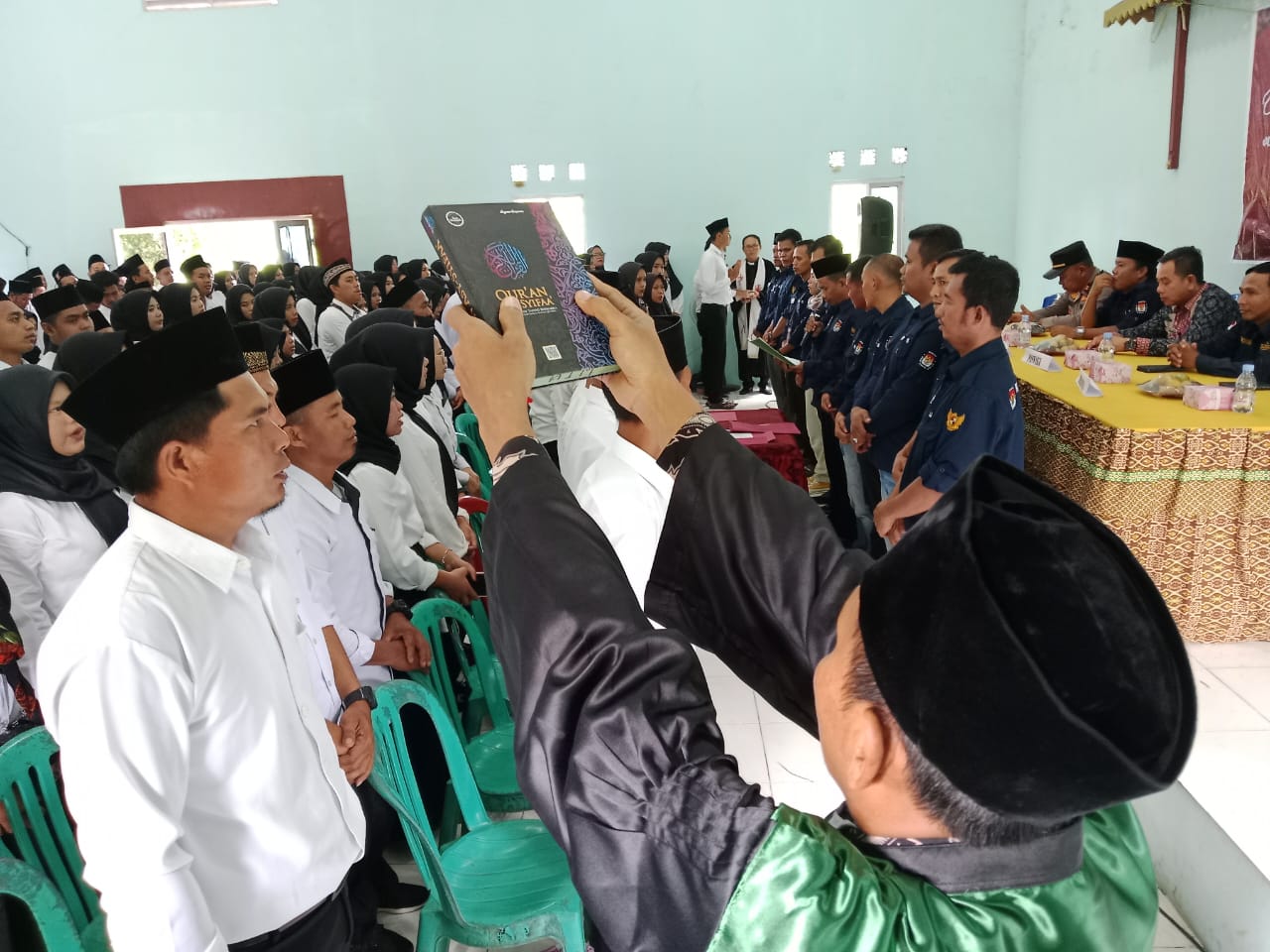 Acara pelantikan dan pengambilan sumpah calon kelompok penyelenggara pemungutan suara dilaksanakan Di Kantor Camat Tuah Negeri.