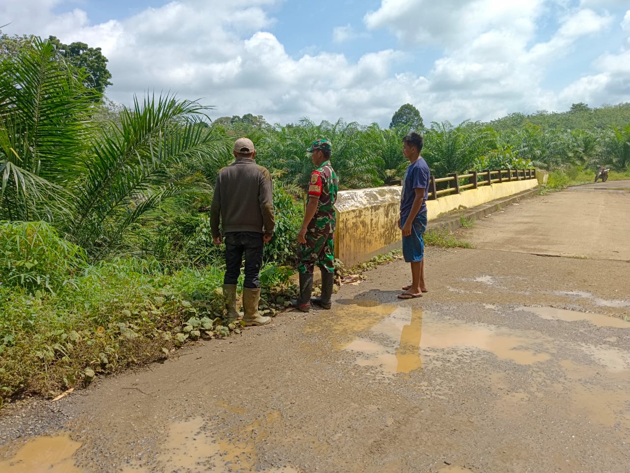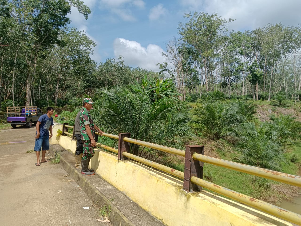 Langkah Antisipasi Banjir, Babinsa Koramil 406-07/Jayaloka Serda Yuda Ade Hermawan Cek Debit Air Sungai temelat