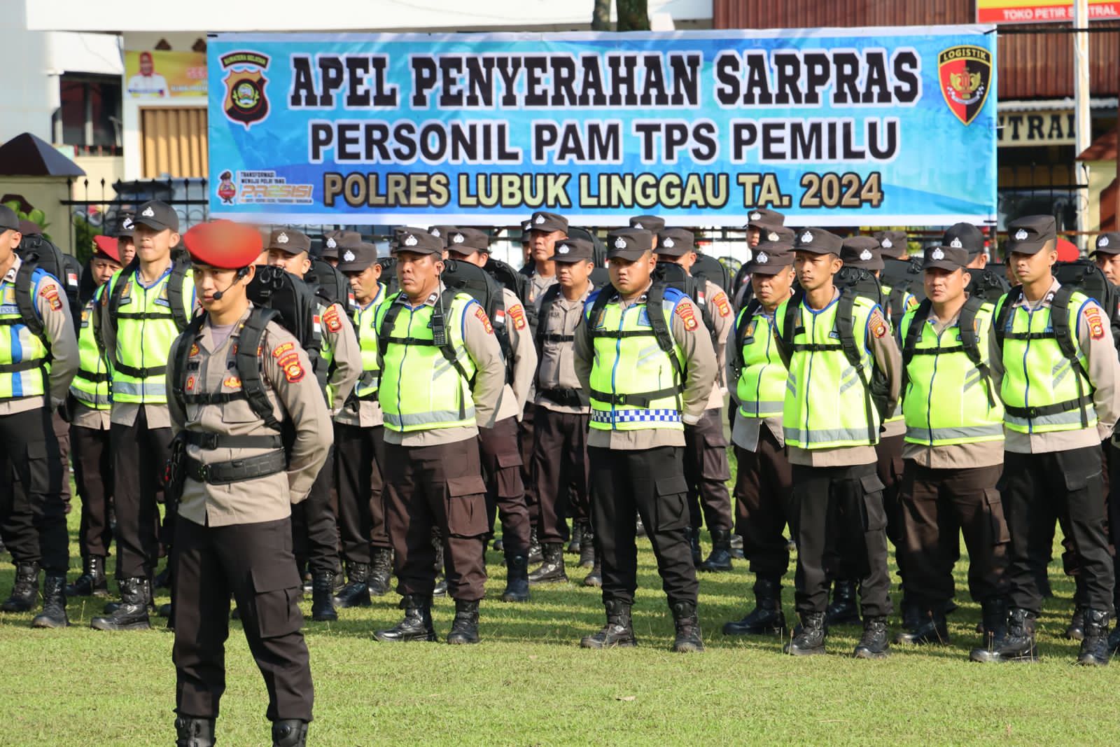 Apel Penyerahan Sarpras Personil Pam TPS Pemilu Polres Lubuk Linggau TA. 2024