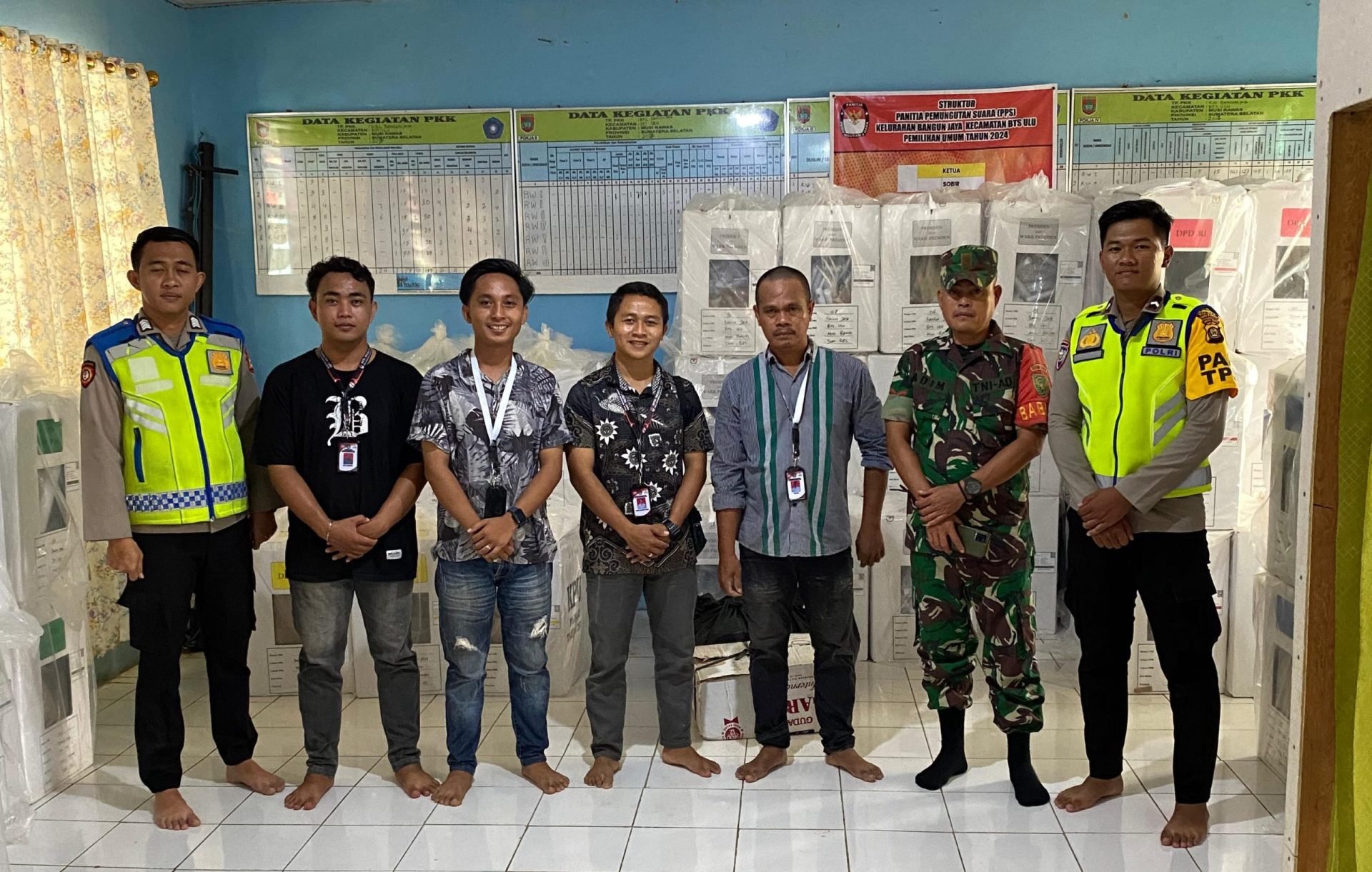 Begitupun pendistribusian Logistik ke desa Mulyo Harjo Babinsa Koptu Sudarmono bersama anggota Polsek bersinergi berikan pengawalan dan pengamanan pendistribusian Logistik Pemilu di desa Mulyo Harjo Kecamatan BTS ULU. Sejumlah 40 buah Kotak Suara , 1 bungkus plastik berisi logistik pemilu dan 32 buah bilik suara juga sampai di tujuan dan di terima Ketua PPS desa Mulyo Harjo dengan aman.