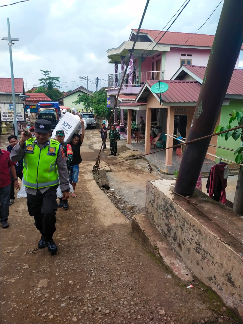 Koptu Supandi Babinsa koramil 406-06/Tugumulyo yang ke seharian nya sebagai Babinsa di desa kebur, bersama Babinkamtibmas berinisiatif melakukan pendorongan logistik pemilu tahun 2024, Dengan cara di panggul dan di ikuti masyarakat, guna ciptakan ke sukseskan pesta demokrasi 5 tahunan,hal tersebut di lakukan dalam rangka pendorongan logistik pemilu di desa kebur, kecamatan TPK, kabupaten Musi Rawas. Selasa (13/02/2024).