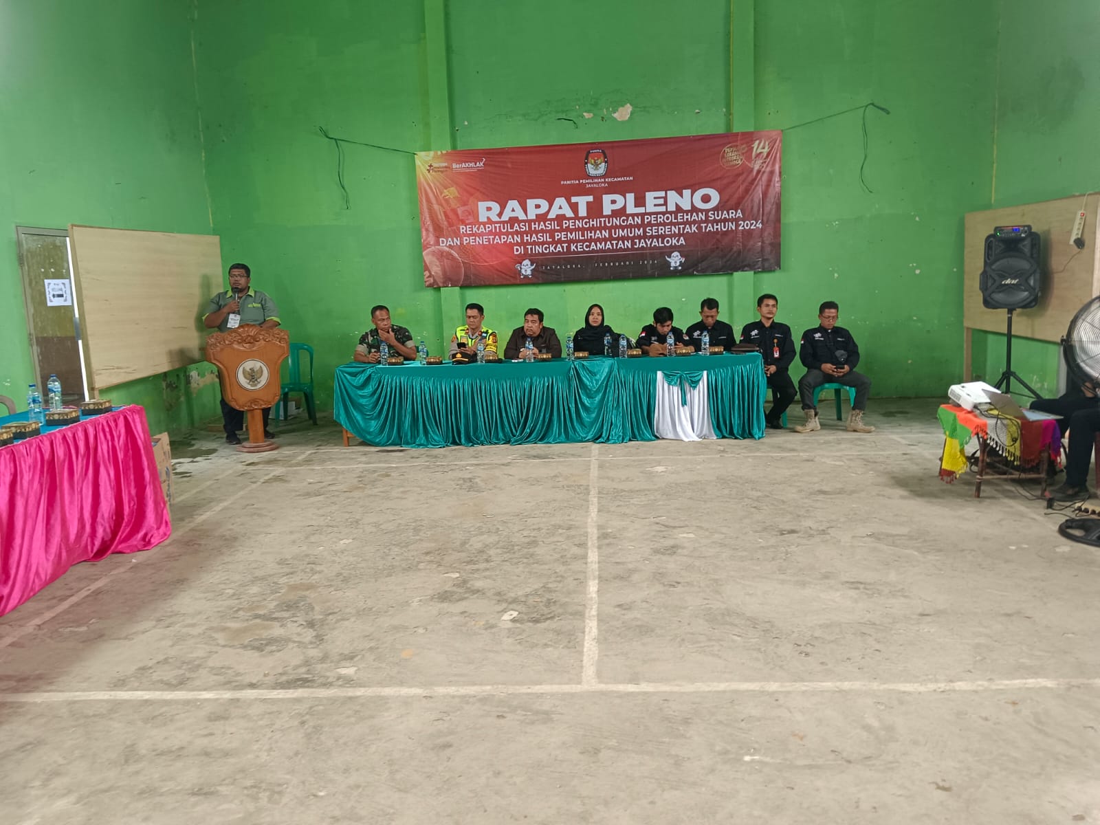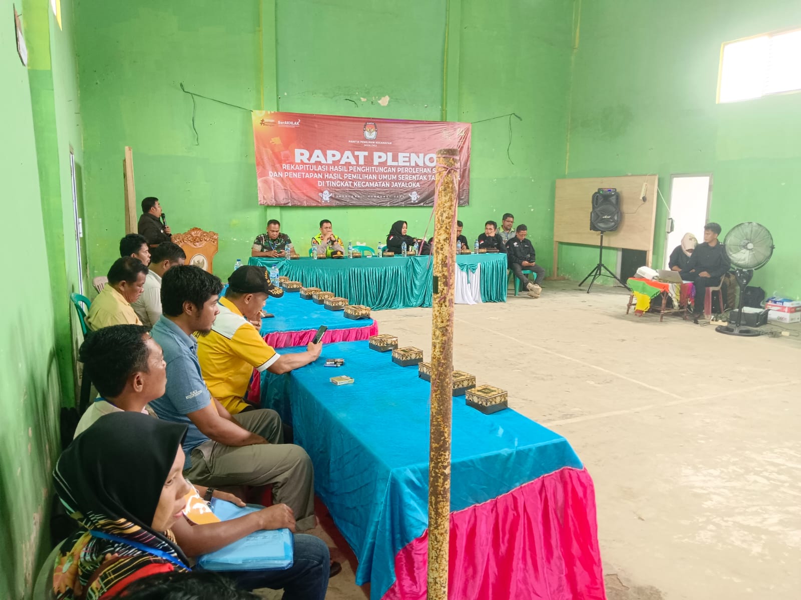 Turut hadir dalam kegiatan tersebut Camat jayaloka, Kapolsek jayaloka, Ketua PPK Kecamatan jayaloka. Ketua Panwas kecamatan, Ketua KPPS Desa dan para Saksi parpol.