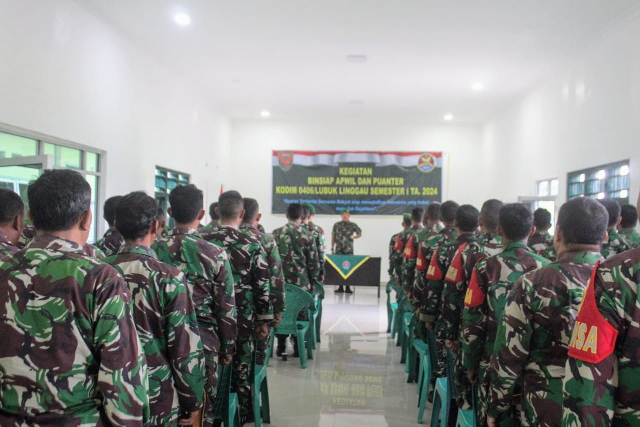Lensa Garuda- Lubuk Linggau. Komandan Kodim 0406/Lubuk Linggau Letkol Inf Kunto Adi Setiawan S.E.,M.Han Buka kegiatan Binsiap Apwil dan Puanter Kodim 0406/Lubuk Linggau semester 1 tahun 2024. Bertempat di Koramil 406-10/LT Jl. Yos Sudarso Air Kuti Kecamatan Lubuklinggau Timur 1 Kota Lubuklinggau. Selasa(27/02/2024).