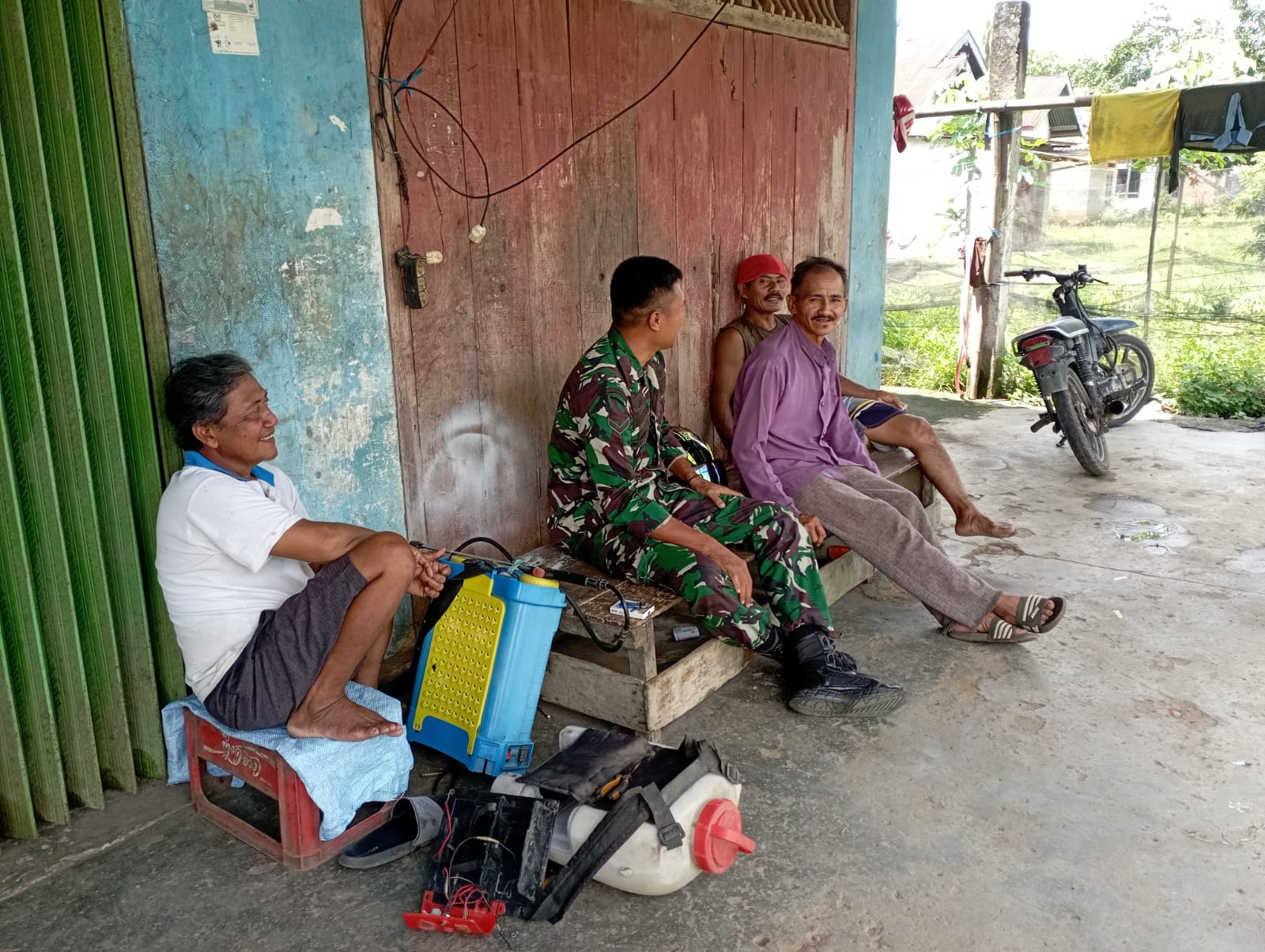 Babinsa Koramil 406-06/ Tugumulyo Serda Nusdar Melaksanakan Komsos Diwilayah binaan.