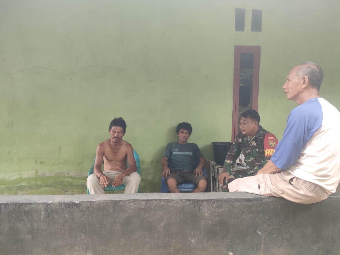 Babinsa Koramil 406-02/Rawas ilir Serda ismail komsos bersama warga didesa bina karya kecamatan karang dapo,kabupaten musi Rawas Utara .selasa(12/03/2024).
