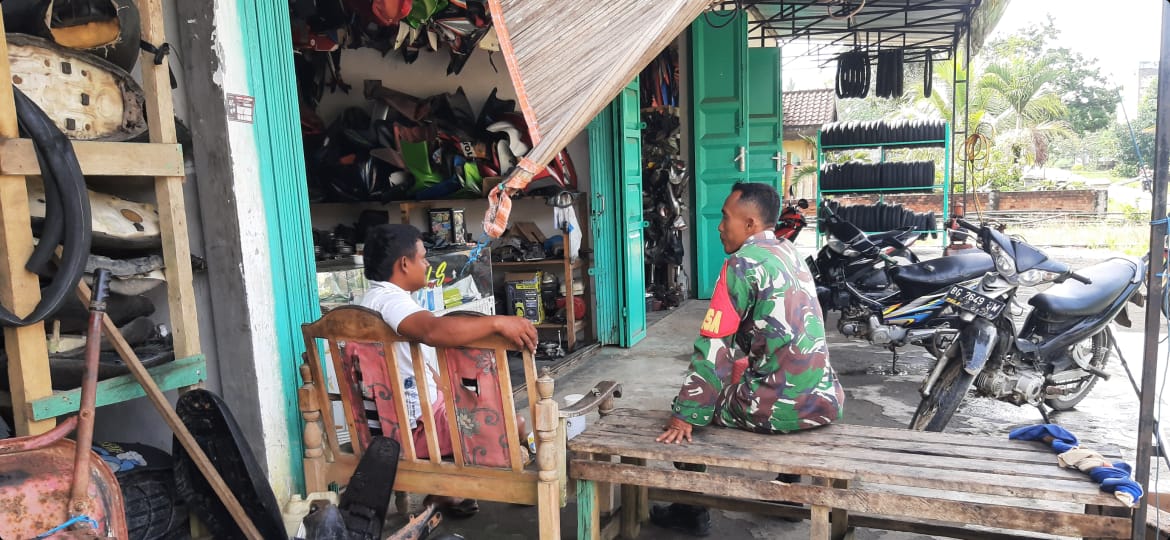 Komsos di Bengkel Motor, Babinsa Berikan Motivasi kepada pemilik bengkel