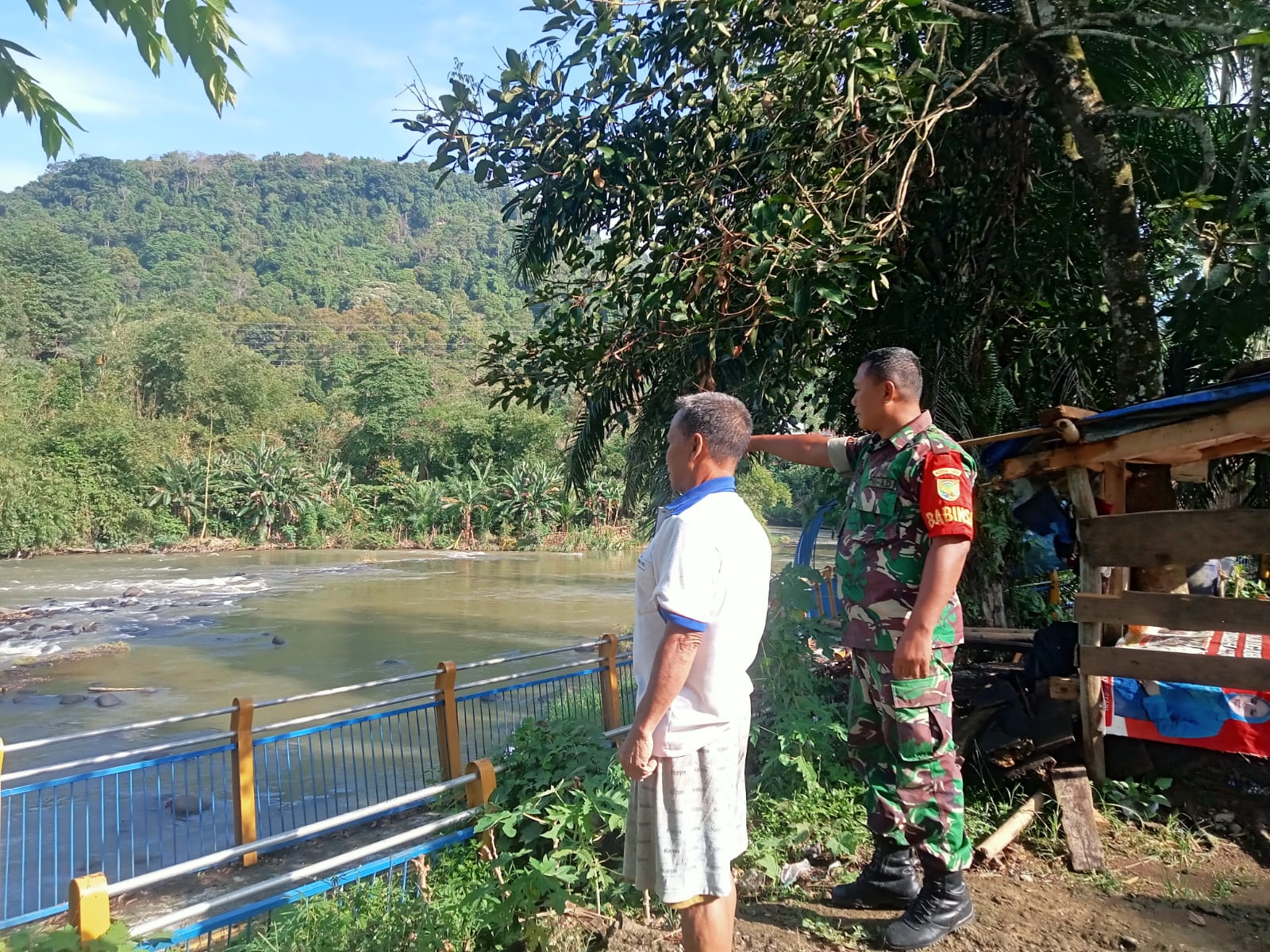 Babinsa Koramil kota Lubuklinggau koptu Ali s Melaksanakan Patroli sekitar tepian sungai dan mengecek debit air sungai di desa binaan masing-masing.