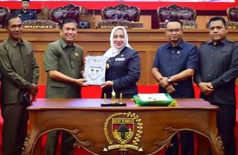 Setelah agenda pembacaan LKPJ yang dibacakan oleh Bupati Musi Rawas,Hj Ratna Mahmud kegiatan dilanjutkan dengan penandatanganan Bersama , serta penyerahan LKPJ, Bupati Mura Hj Ratna Machmud dengan Ketua DPRD Mura, Azandri, S.ip disaksikan ketua-ketua Fraksi, Ketua-Ketua Komisi dan anggota dewan yang sempat hadir.(Pendim 0406/LLG).