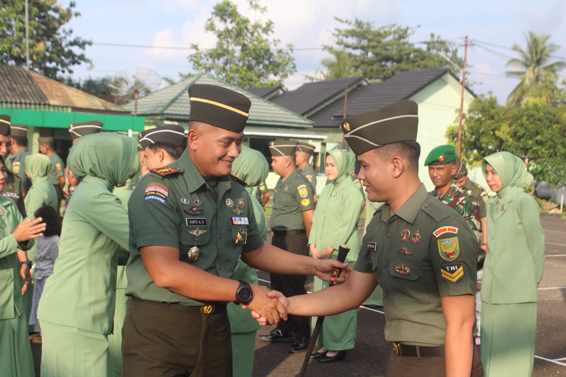 “Kepada anggota yang telah dinaikkan pangkatnya selaku pimpinan mengharapkan adanya perubahan yang positif baik sikap perilaku dan tanggung jawab yang lebih tinggi terhadap tugas yang dipercayakan nantinya sehingga keberadaannya mampu meningkatkan kinerja satuan sesuai pangkat dan jabatan yang telah diberikan”ungkap Dandim Letkol Inf Kunto Adi Setiawan S.E.,M.Han.