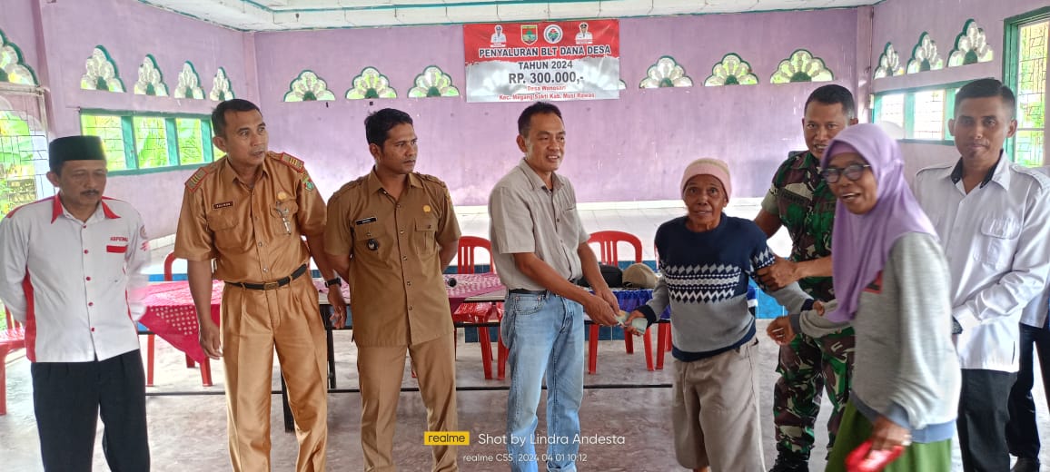 Pastikan aman dan tepat sasaran Sertu tugiyanto laksanakan pendampingan pelaksanaan pembagian BLT di desa Wonosari kecamatan Megang sakti kabupaten Musi Rawas. Senin (01/04/2024).