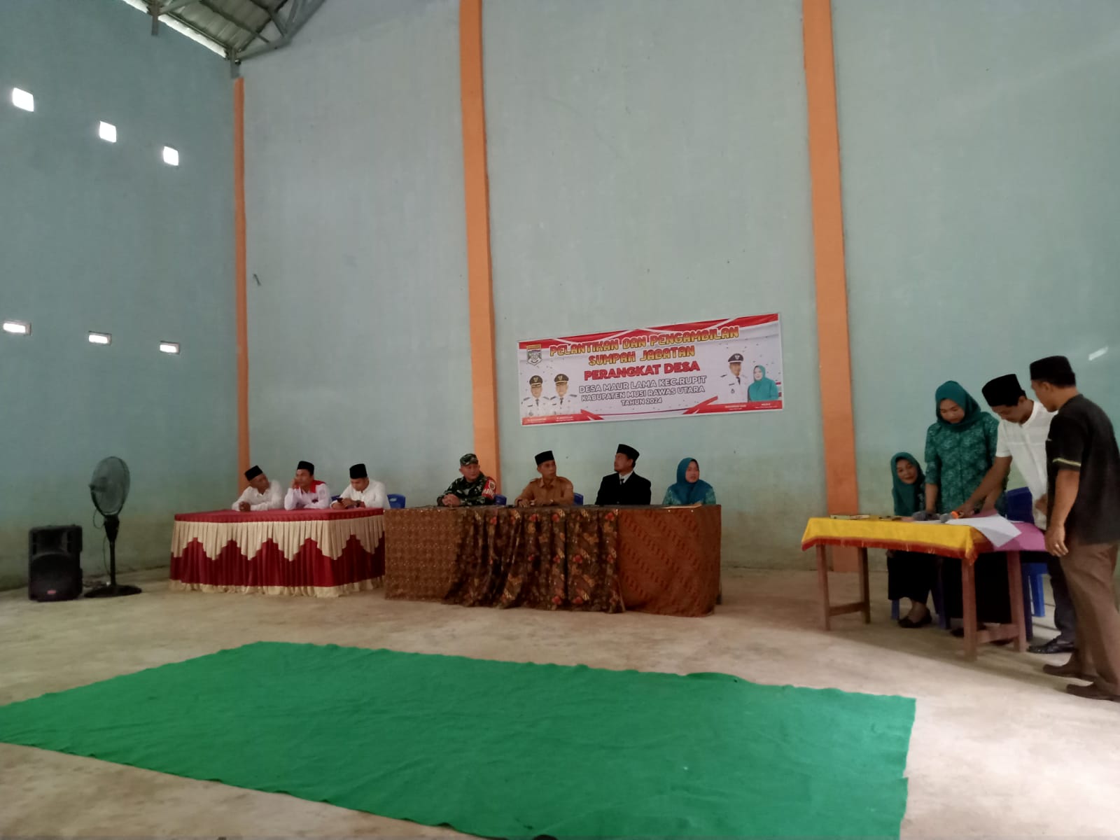 Babinsa Koramil 406-03/Rupit Sertu Yudha Satria menghadiri pelantikan dan pengambilan sumpah jabatan perangkat desa yang lama ke perangkat desa yang baru, bertempat di Aula Kantor Desa Maur Lama, Kecamatan Rupit ,Kabupaten, Musi rawas Utara.