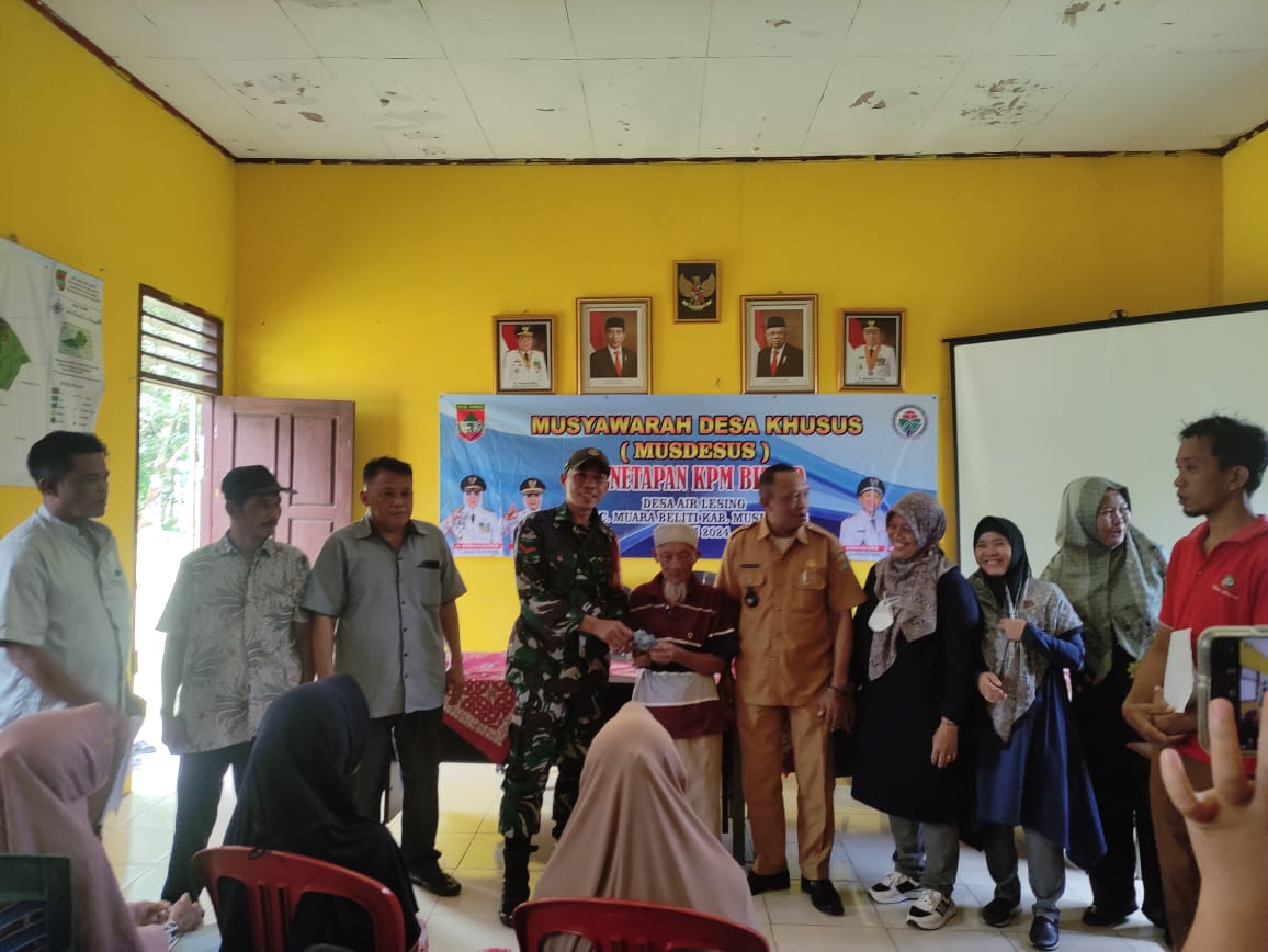 Babinsa Koramil 406-06/Tugumulyo Koptu Yogi Mengikuti Kegiatan Pembagian (BLT-DD) Di Desa Air Lesing, Kecamatan Muara Beliti, Kabupaten Musi Rawas .