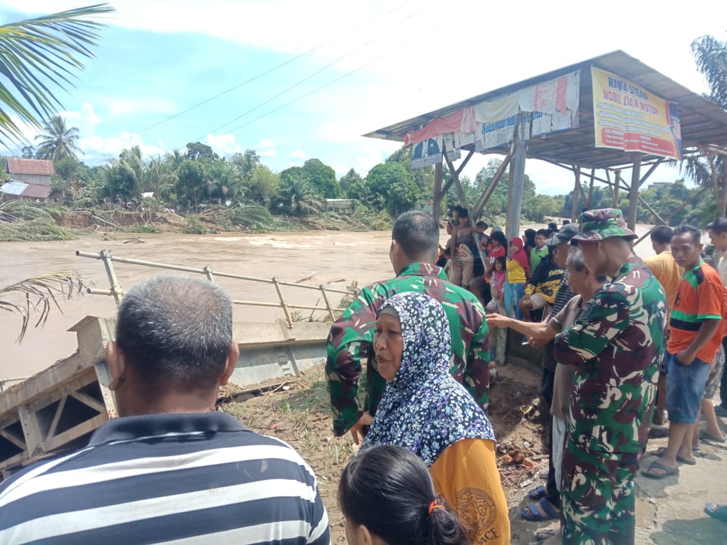 Dilokasi Kasdim Mayor Inf Nur Sigit Prasetya S.I.P.,M.Sc langsung meninjau lokasi banjir dan meninjau jembatan beton permanen yang putus akibat diterjang banjir bandang.