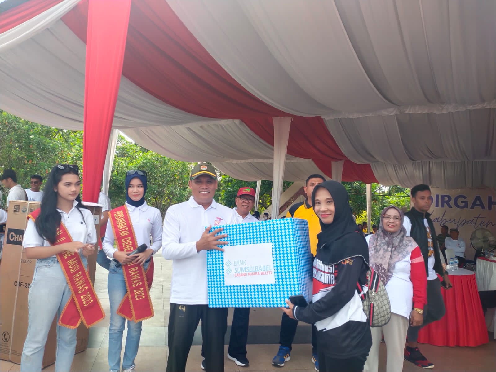 Acara jalan santai rangkaian kegiatan memperingati hari jadi Kabupaten Musi Rawas Ke 81 ini di buka dan dilepas oleh Wakil Bupati Musi Rawas Hj Suwarti Burlian.