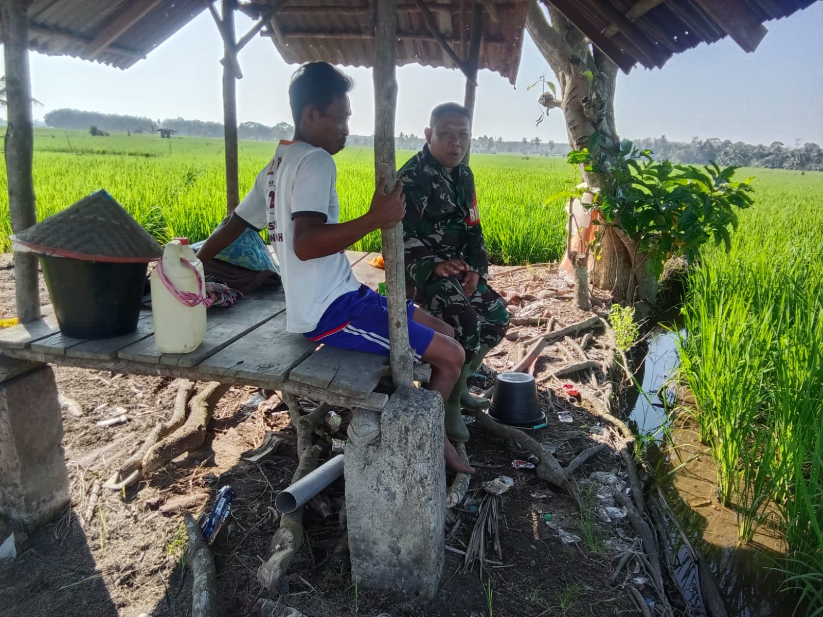 “Kali ini kita datang ke lokasi sawah milik warga desa Banpres disinilah kita mendengar keluhan para petani”, ujar Serda Rustan.