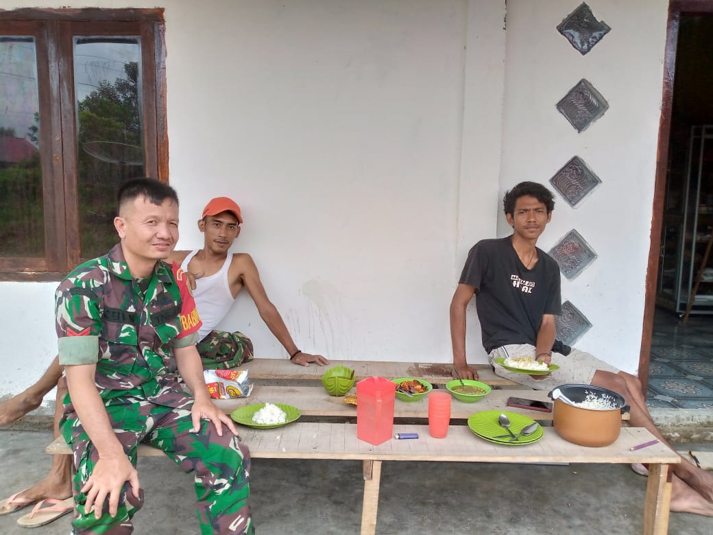 Babinsa Koramil 406-03/rupit , dalam menjalin rasa keakraban serta kebersamaan yang baik dengan warga di salah satu Desa tanjung beringin Kecamatan rupit kab, musi rawas utara .