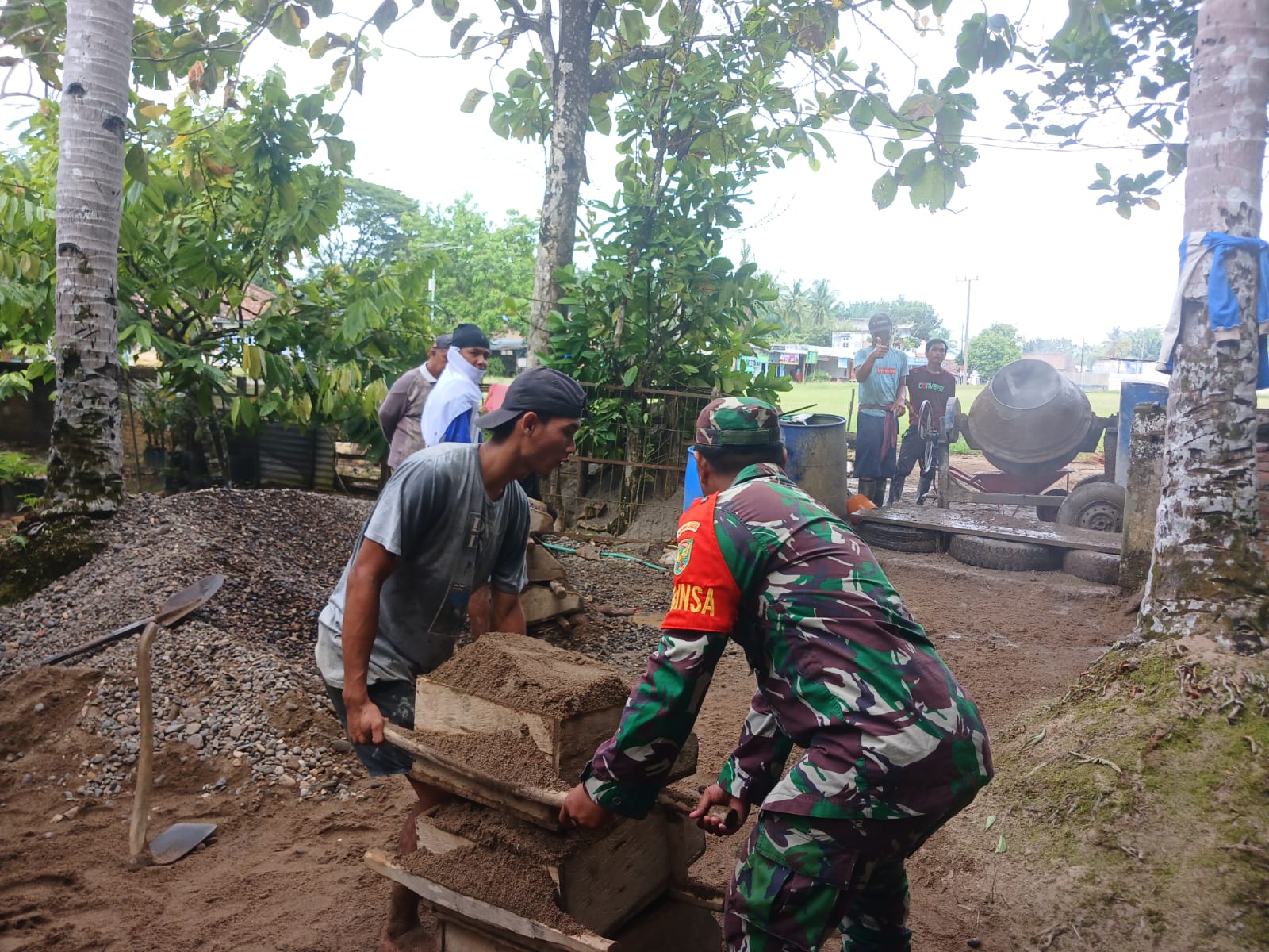Manunggal dengan Rakyat, Babinsa Bantu Warga Gotong Royong Bangun Jalan