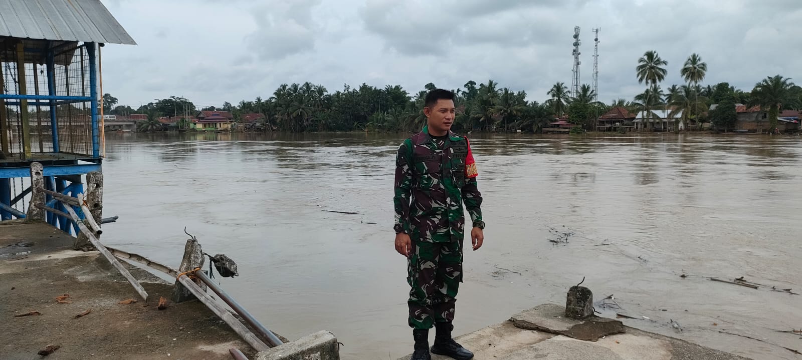 Danramil melalui para Babinsa di wilayah menghimbau kepada masyarakat untuk selalu waspada mengingat “situasi saat ini hujan masih terus mengguyur dan tidak menutup kemungkinan air sungai meluap lebih luas lagi, “