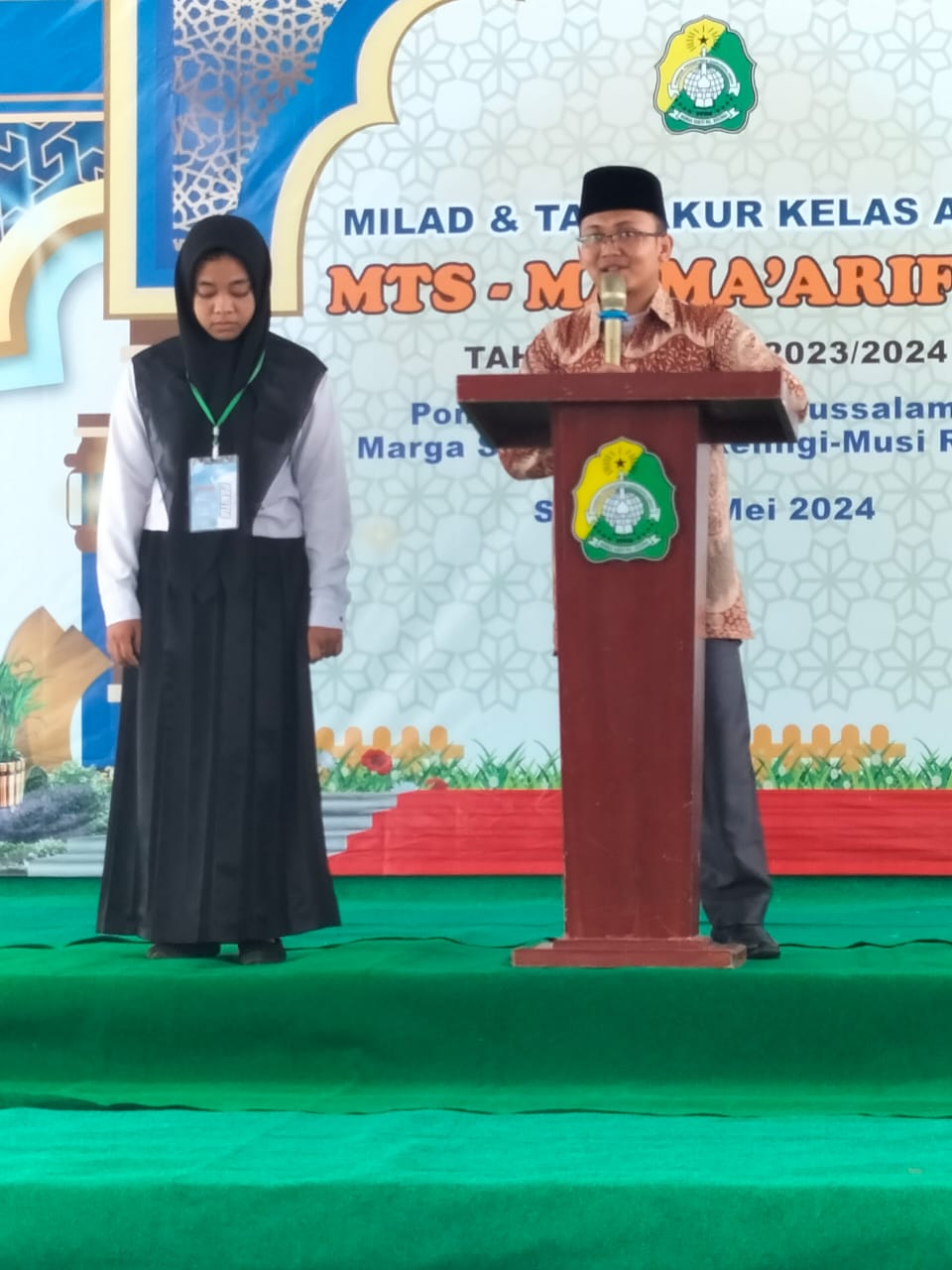 “Pada hari ini pihak sekolah MTS Negeri Muara Kelingi menggelar acara milad dan tasyakuran pelepasan dan perpisahan kelas IX di MTSN”, ungkapnya.