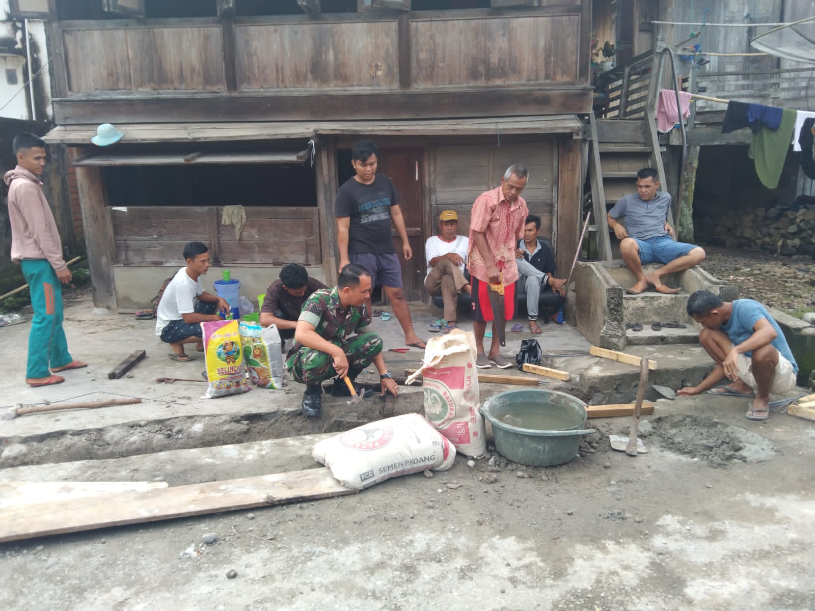 “Membaur bersama warga dalam proses pengerjaan perbaikan Siring saluran air di depan rumah warga binaan ini merupakan bentuk kepedulian sekaligus wujud kemanunggalan TNI dengan rakyat”, ucapnya.