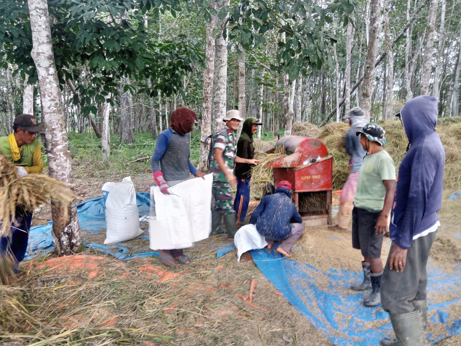 Pada kali ini Babinsa Koramil 406-05/Muara Kelingi Serma Zulkarnain melakukan pendampingan sekaligus membantu kelompok tani melaksanakan panen perdana.