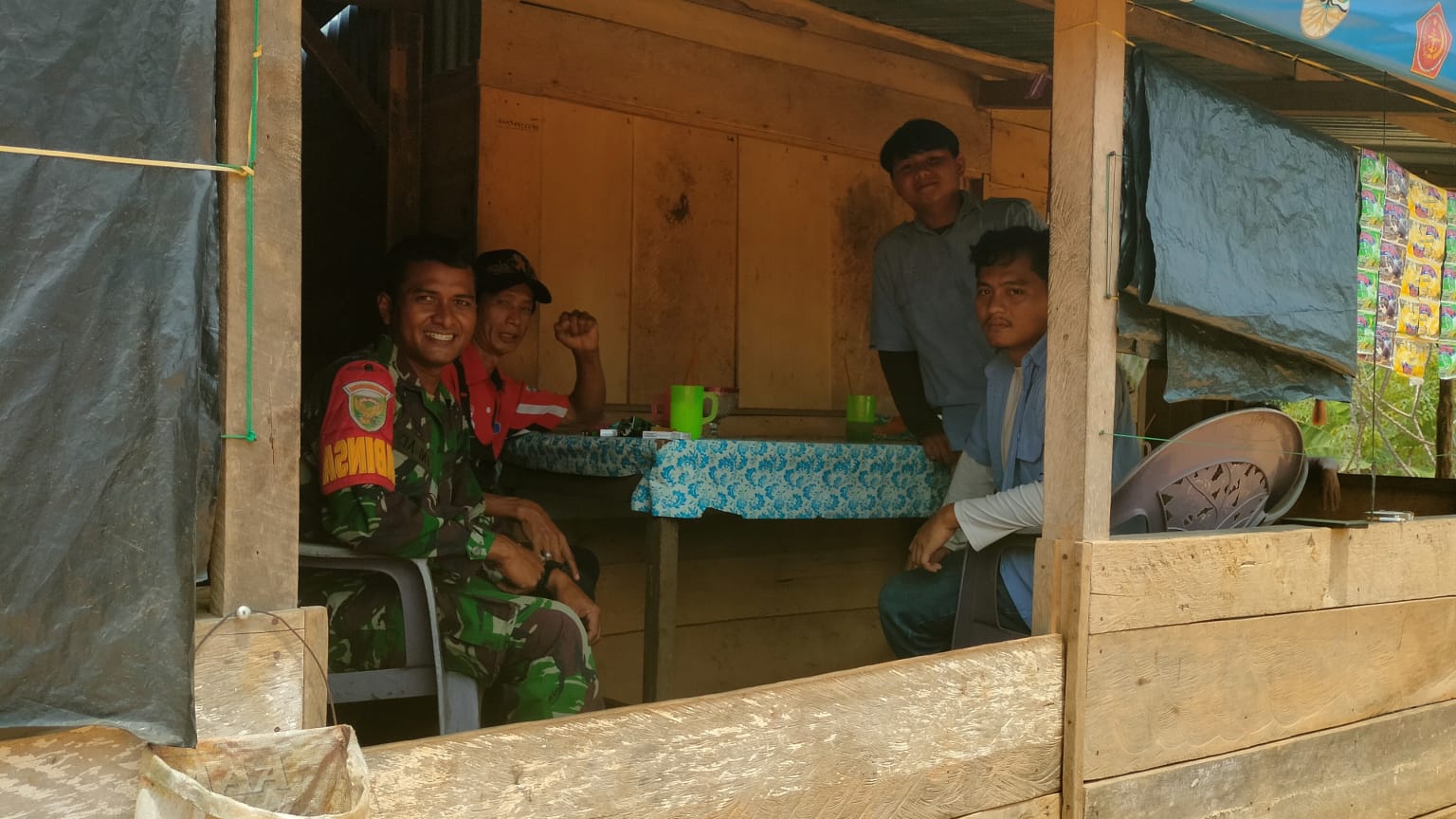 Babinsa Koramil 406-04/Muara Lakitan Kodim 0406/Lubuklinggau Serda Dimas Prayoga melaksanakan kegiatan Komunikasi Sosial (Komsos) dengan masyarakat binaan, bertempat di Warung Kopi desa pelita jaya, Kecamatan Muara Lakitan, Kabupaten Musi Rawas, Selasa (14/05/2024).