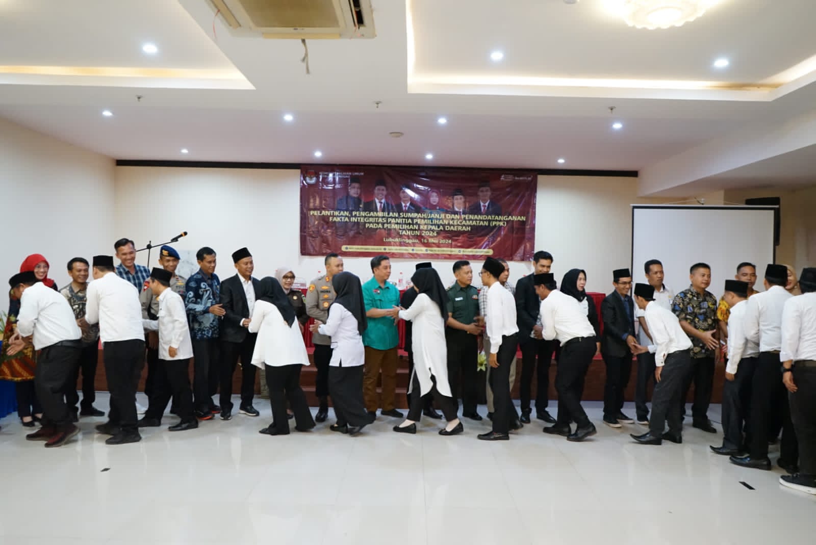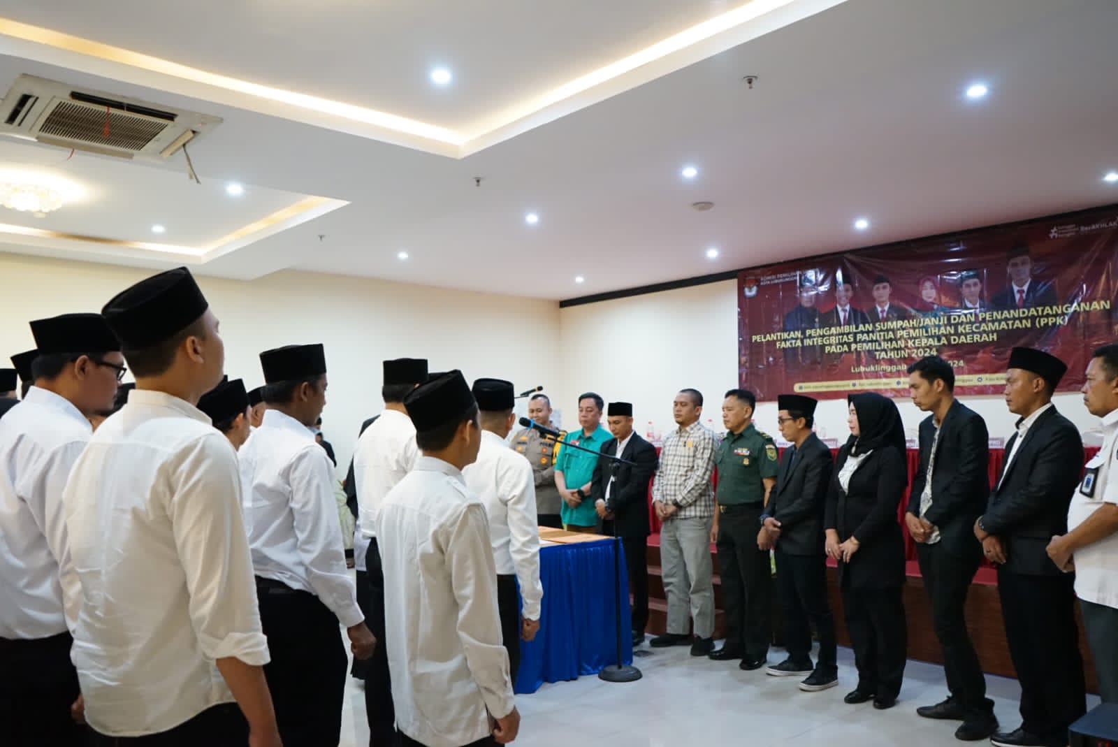 Acara tersebut dihadiri oleh Ketua KPU Kota Lubuk Linggau Aspin Dodi, Ketua Bawaslu, Pj Sekda H. Tamri, Dandim 0406/Lubuk Linggau diwakili Letda Cku Herman DC, Kapolres Kota Lubuk Linggau AKBP Indra Arya Yudha, Perwakilan Kajari,tamu undangan dan PPK yang dilantik.