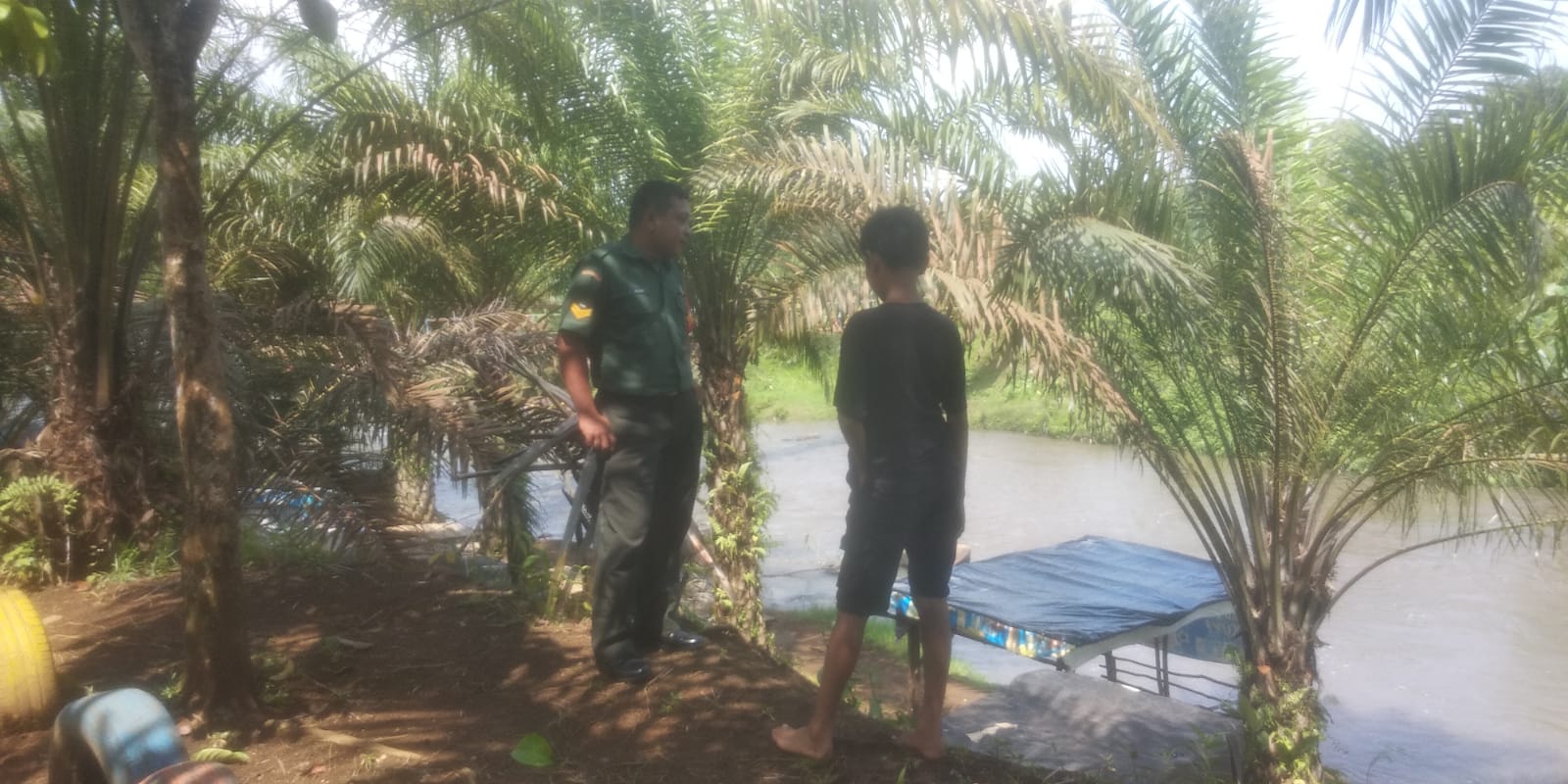 Babinsa Koramil Lubuklinggau Melaksanakan Patroli sekitar tepian sungai dan mengecek debit air sungai di Wilayah binaan masing-masing.