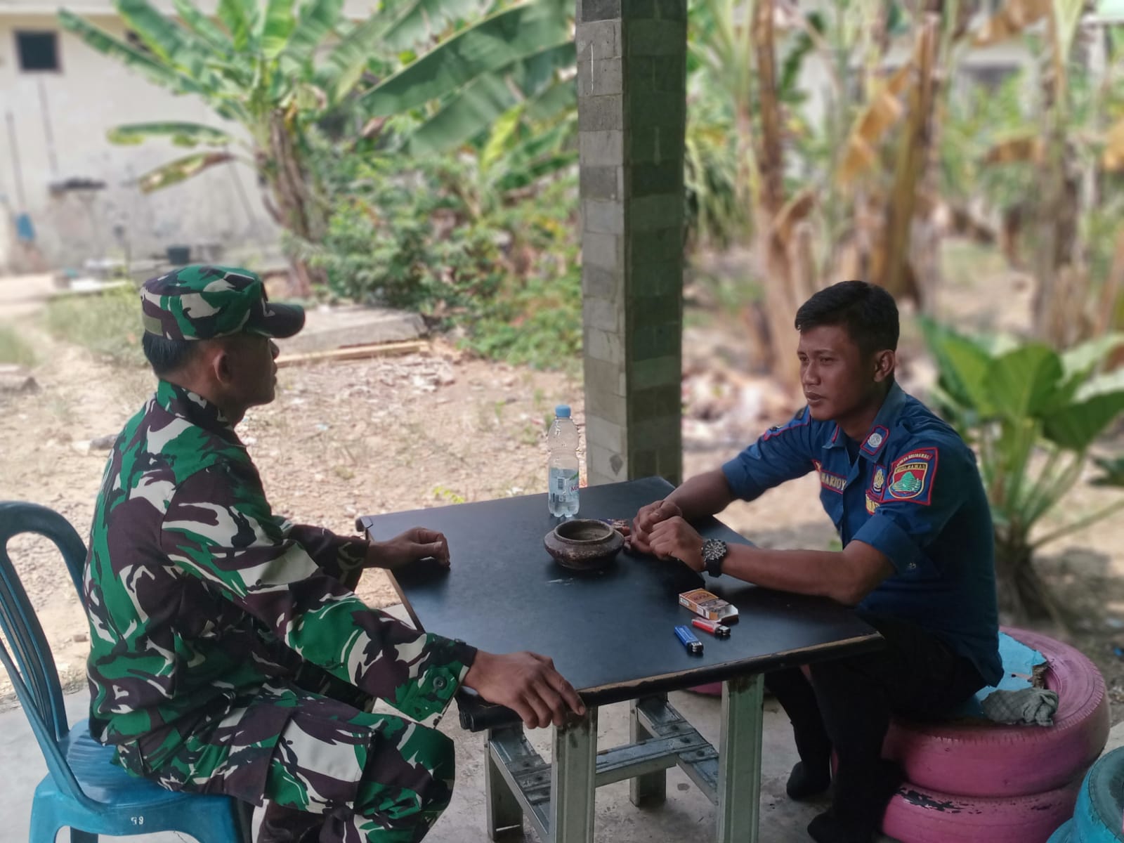 Babinsa Koramil 406-07/jayaloka Melaksanakan Komsos Bersama Anggota Damkar di Wilayah binaan