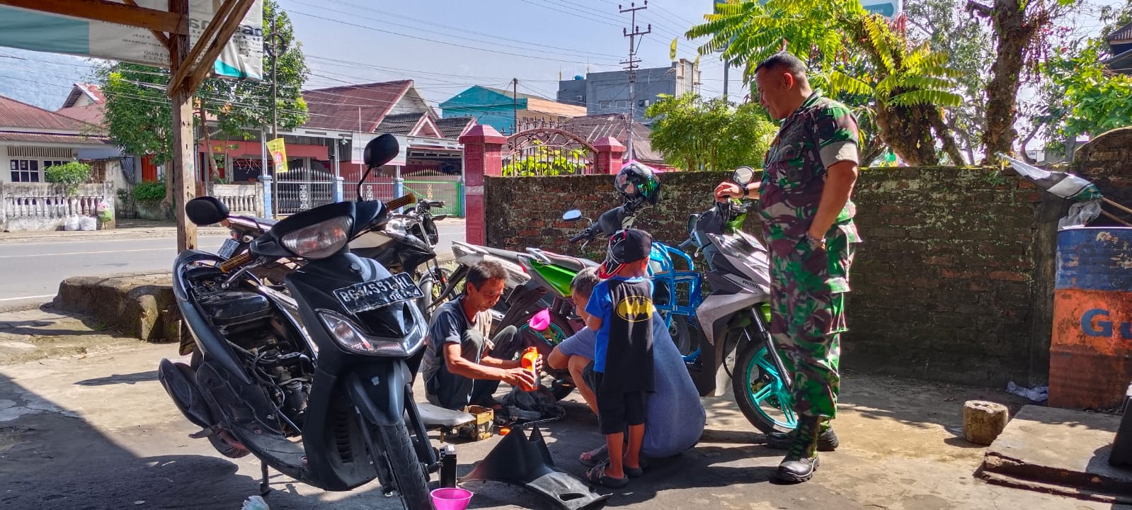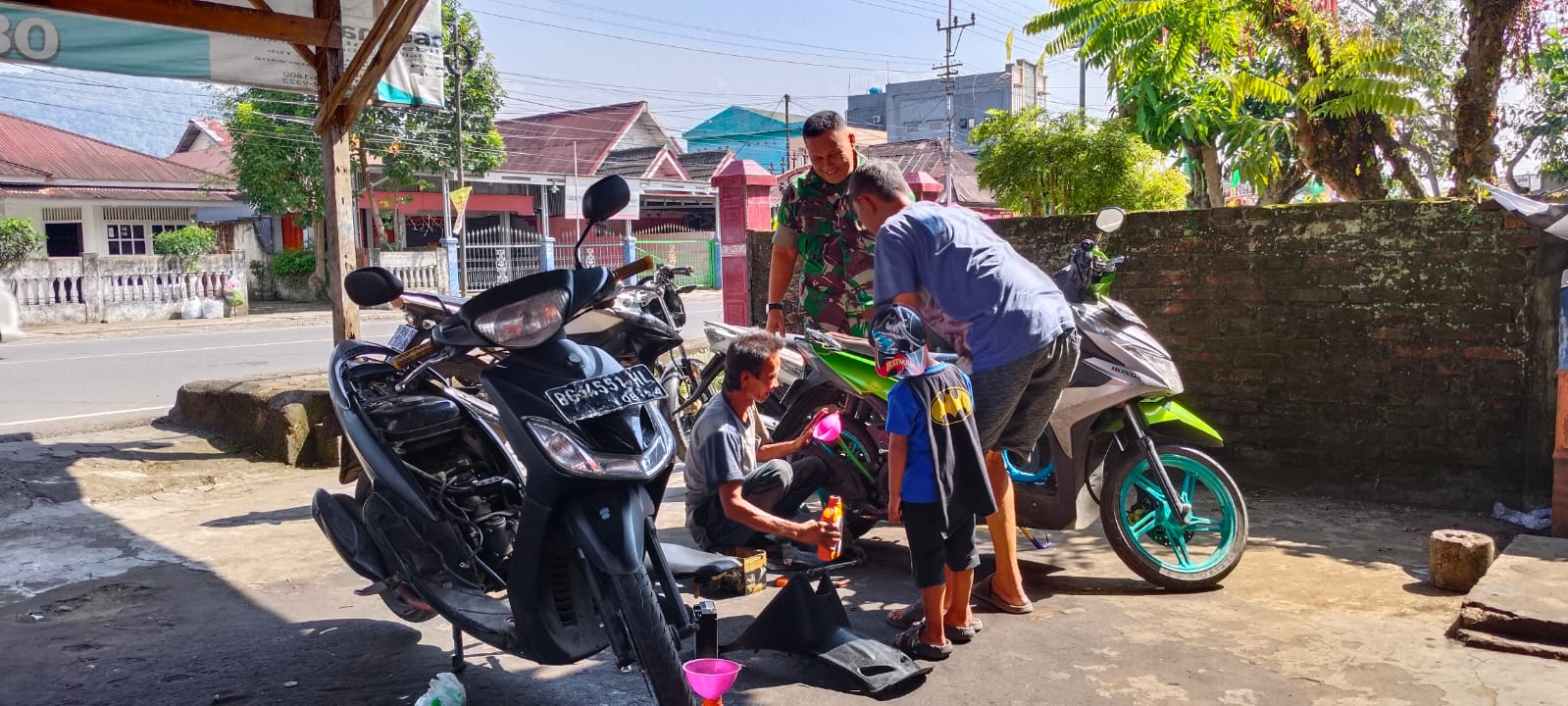 Babinsa Koramil 406-08/Lubuklinggau Serda Aprizal Melaksanakan Komsos Di Bengkel Pak Soleh Kelurahan Lubuktanjung, Kecamatan Lubuklinggau Utara II, Kota Lubuklinggau