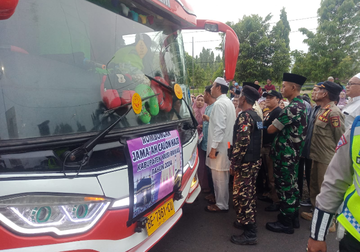 Para jemaah calon haji yang di berangkatkan berjumlah 129 jamaah, persiapan berangkat menuju Palembang dengan mengendarai empat unit bus diantaranya, Bus 1 dengan jumlah 34 jamaah, Bus 2 dengan jumlah 34 jamaah, Bus 3 dengan jumlah 31 jamaah dan Bus 4 dengan jumlah 30 jamaah.(Pendim 0406/LLG).