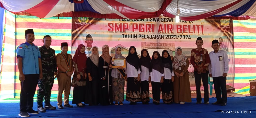Kegiatan acara pelepasan dan perpisahan diselenggarakan di halaman sekolah SMP PGRI Air Beliti. Dengan di selenggarakannya kegiatan ini bertujuan pengembalian ataupun serah terima tanggung jawab dari para guru kepada orang tua atau wali murid siswa siswi SMP PGRI Air Beliti khususnya kelas IX, sekaligus sebagai momentum perpisahan antara siswa siswi dengan para guru.