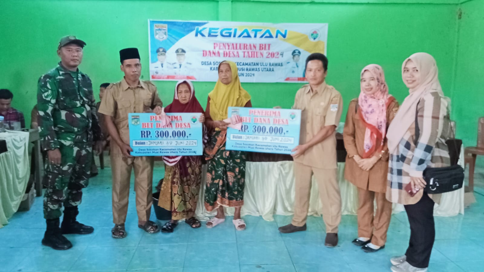 Babinsa Koramil 406-01/rawas ulu serda niki sudoyo Mengikuti Kegiatan Pembagian (BLT-DD) Di Desa sosokan, Kecamatan rawas ulu, Kabupaten Musi Rawas utara .