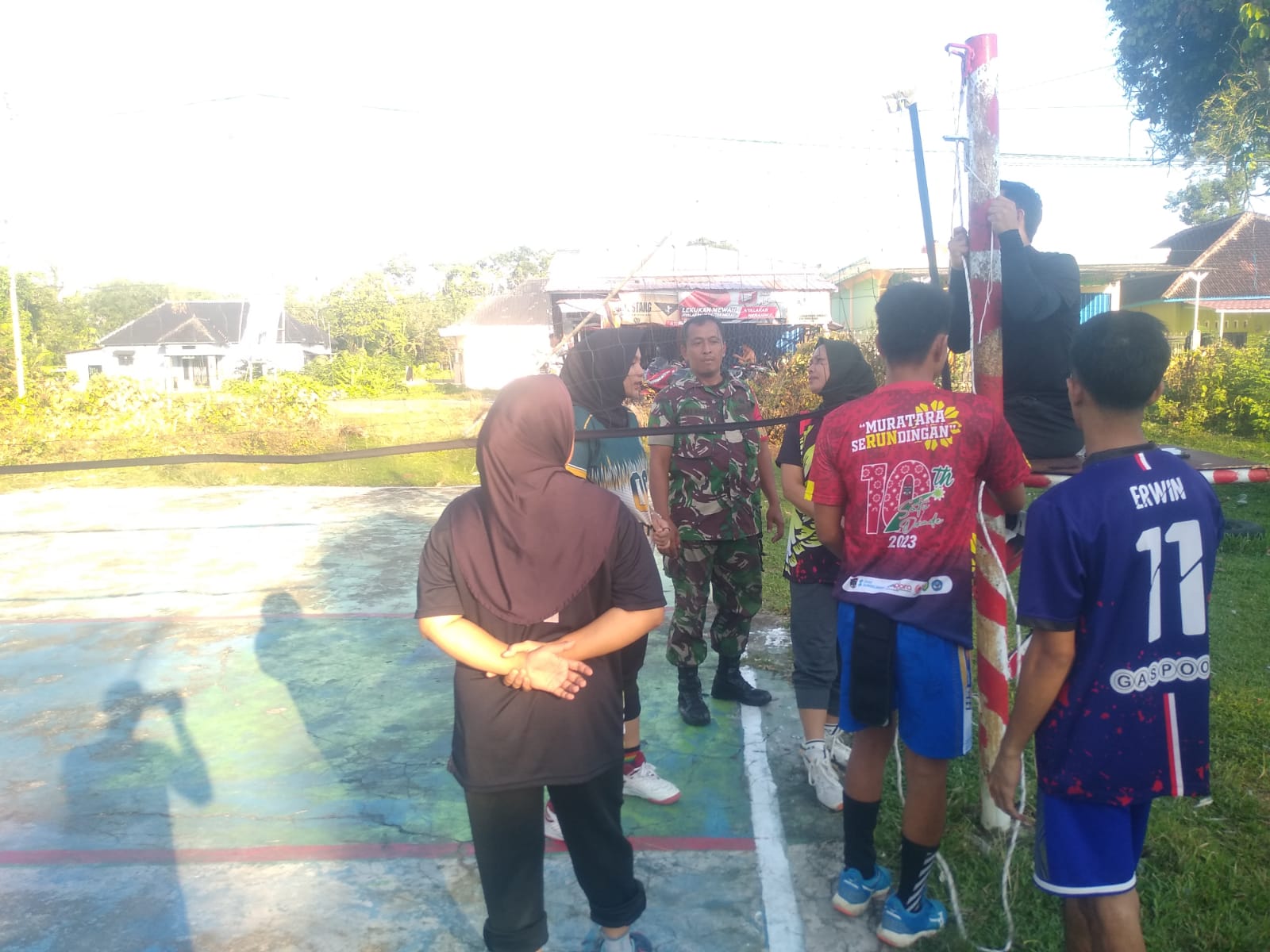 Babinsa Koramil 406-01/rawas ulu koptu ali Kusno , dalam menjalin rasa keakraban serta kebersamaan yang baik dengan warga di salah satu lapangan voli di kel,surulangun kec,rawas ulu, musi rawas utara.