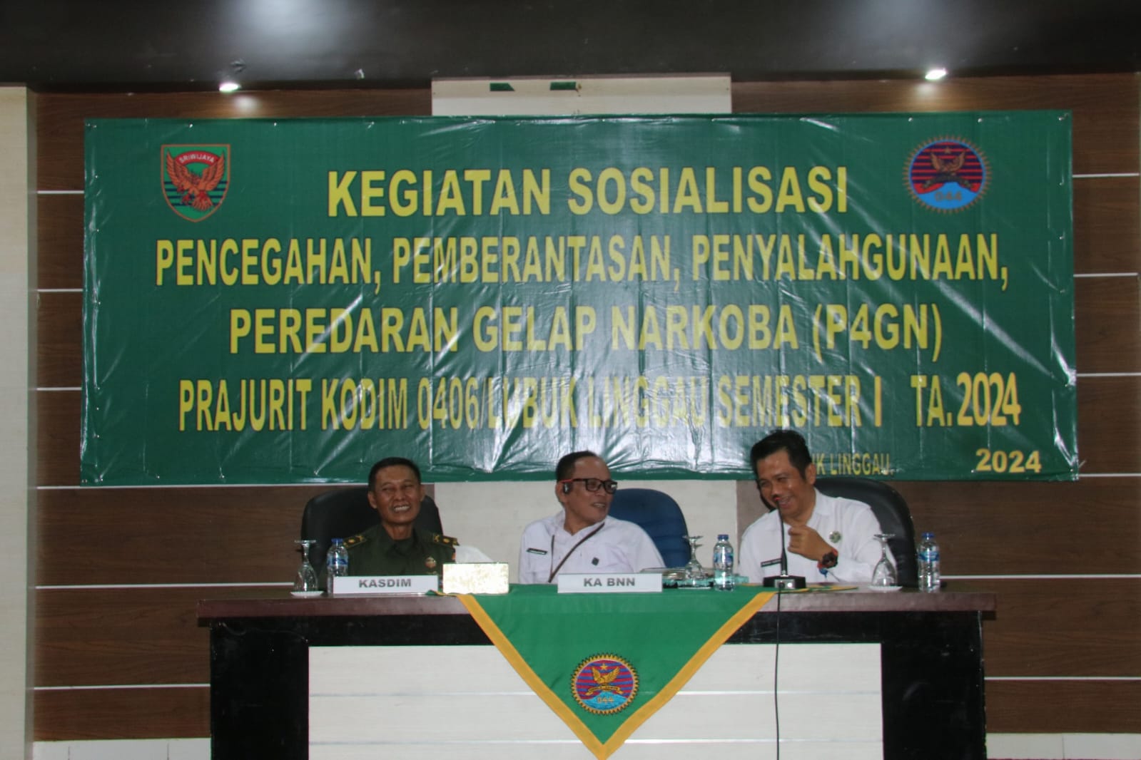 Lensa Garuda- Lubuk Linggau. Dalam rangka pencegahan, pemberantasan, penyalahgunaan, peredaran gelap narkoba (P4GN) di lingkup TNI, personil TNI Kodim 0406 Lubuk Linggau melaksanakan kegiatan sosialisasi P4GN semester I TA. 2024. Bertempat di Aula Pamungkas Kodim 0406 Lubuk Linggau. Senin (24/06/2024).