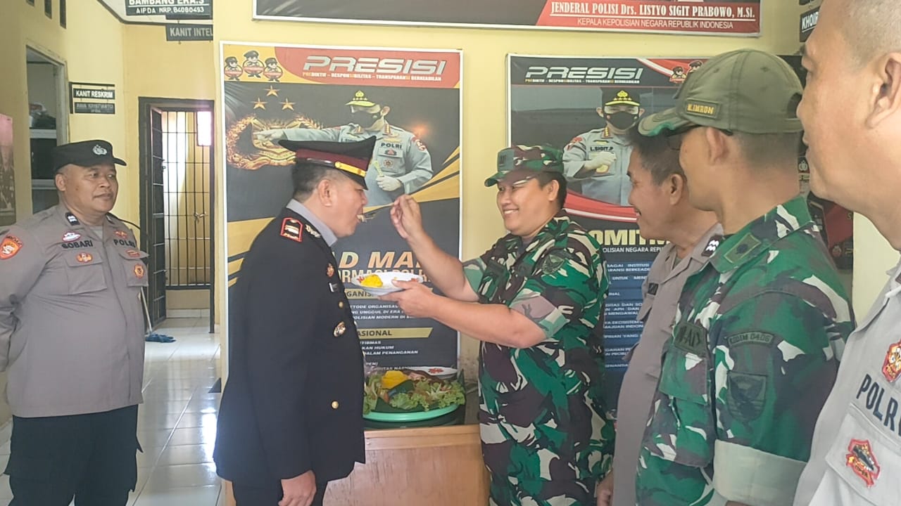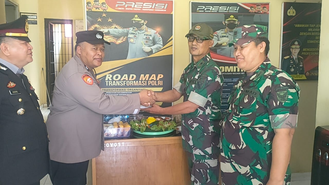Bentuk sinergitas TNI – POLRI Kedatangan tiba-tiba Danramil dan Anggota Koramil 406-02/rawas ilir memberikan ucapan HUT Bhayangkara ke 78 di kantor Polsek karang Dapo, kec Rawas ilir kab musi rawas utara