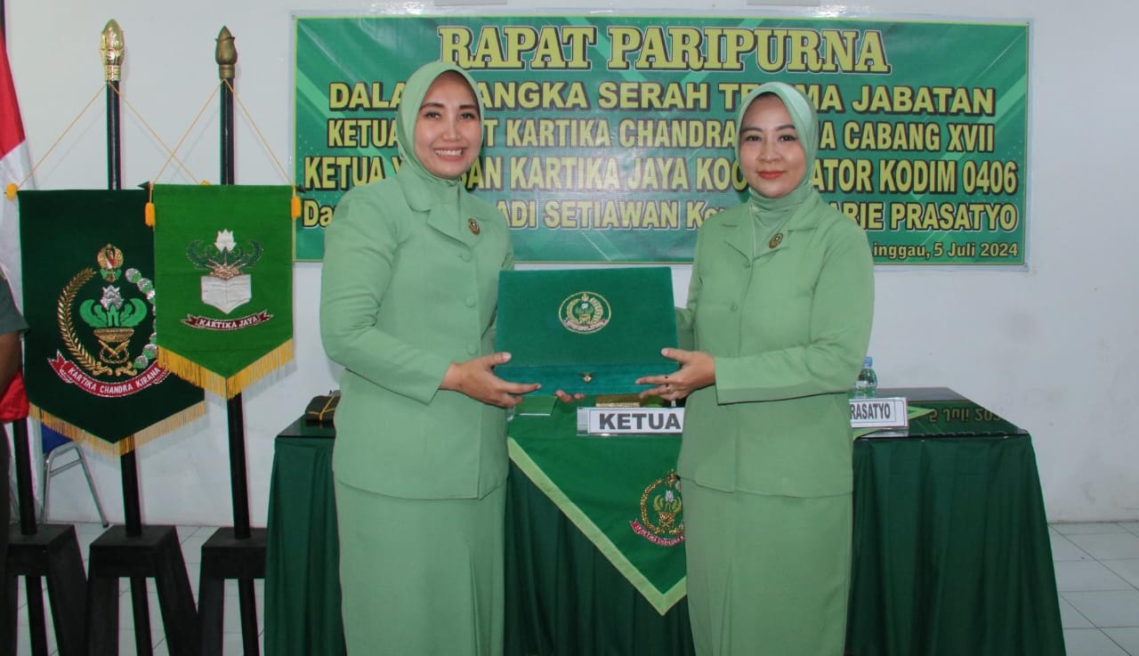 Seiring dengan berakhirnya jabatan Dandim 0406/Lubuk Linggau Letkol Inf Kunto Adi Setiawan S.E.,M.Han maka berakhir pula masa jabatan Ketua Persit Kartika Chandra Kirana (KCK) Cabang XVII Dim 0406 Lubuk Linggau Ny. Almira Kunto Adi Setiawan dan akan diserahkan kepada Ny. Arie Prasatyo Widyo Broto.