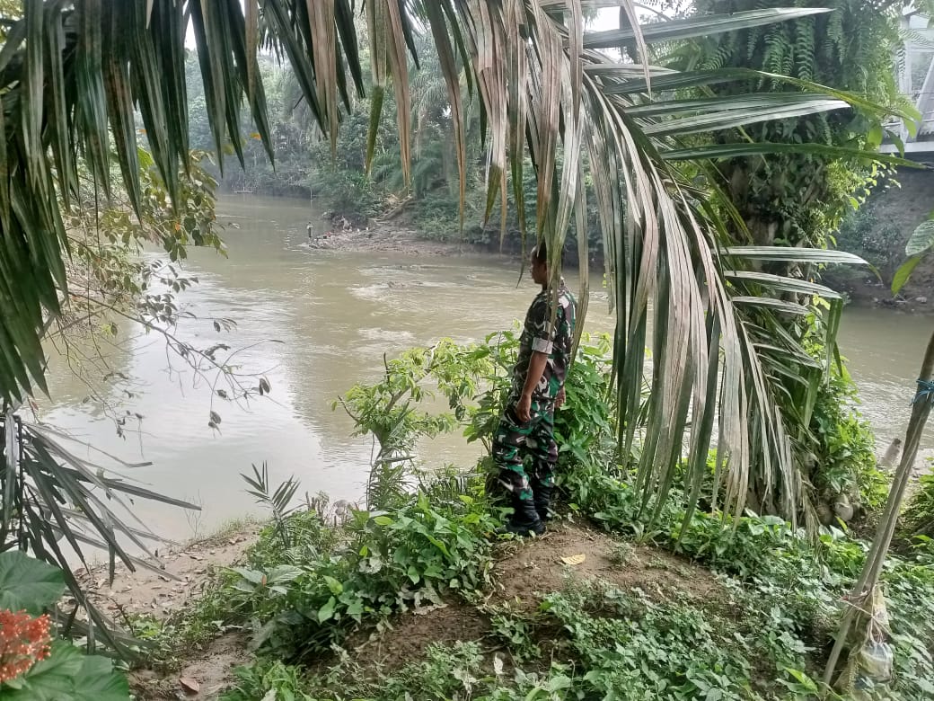 Babinsa Koramil 406-09/Terawas Melaksanakan Patroli sekitar tepian sungai dan mengecek debit air sungai di Wilayah binaan masing-masing.