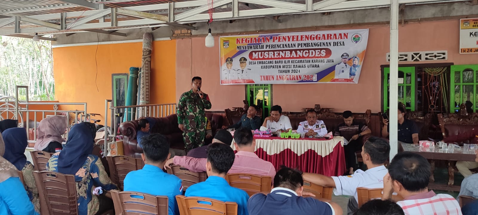 Babinsa Koramil 406-03/rupit Serda icshan menghadiri Musyawarah desa dalam rangka Penyusunan Rencana Kegiatan Pembangunan Desa (Musrenbangdes) tahun 2024 bertempatan di kecamatan Rupit kabupaten musi rawas utara