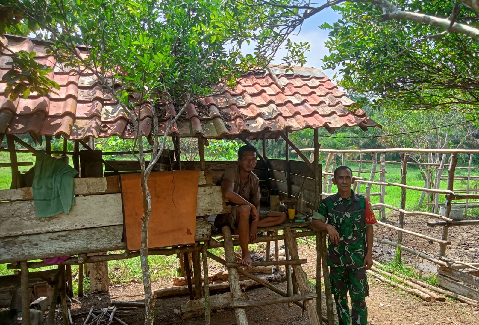 Jalani rasa keakraban dan kekeluargaan dengan warga suku Anak dalam (SAD) babinsa melaksanakan kegiatan komsos di salah satu desa binaan.