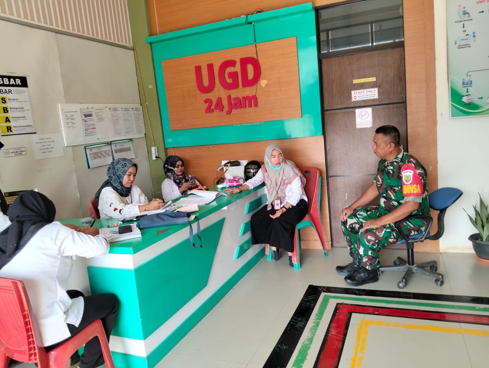 Babinsa Koramil 406-02/rawas ilir Serma Endang permana, melaksanakan kegiatan Komsos dengan Nakes di Puskesmas Binging teluk kegiatan pendataan stunting di Desa bringin makmur 2 Kecamatan Rawas ilir, Kabupaten Musi rawas utara