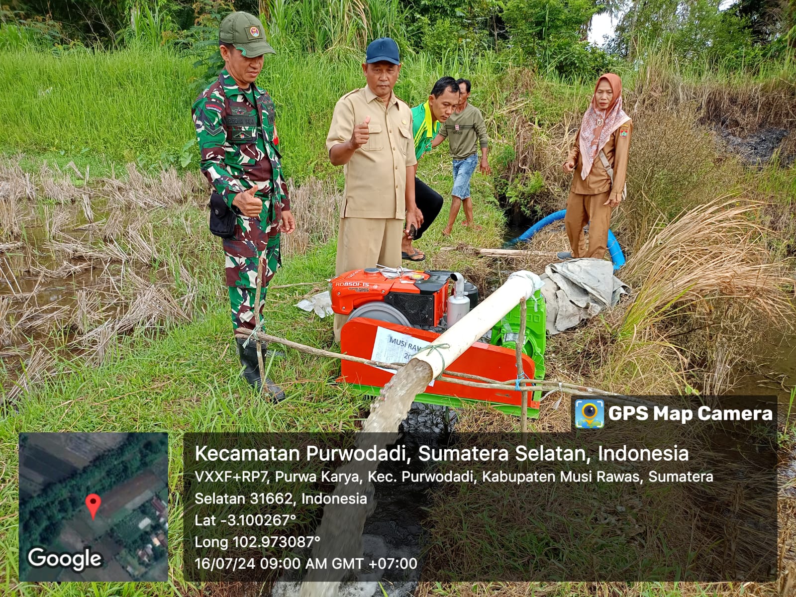 Uji coba pengoperasian pompa air dilakukan berlokasi di Desa purwakarya, Kecamatan Purwodadi, Kabupaten Musi Rawas. Selasa, (16/07/2024).