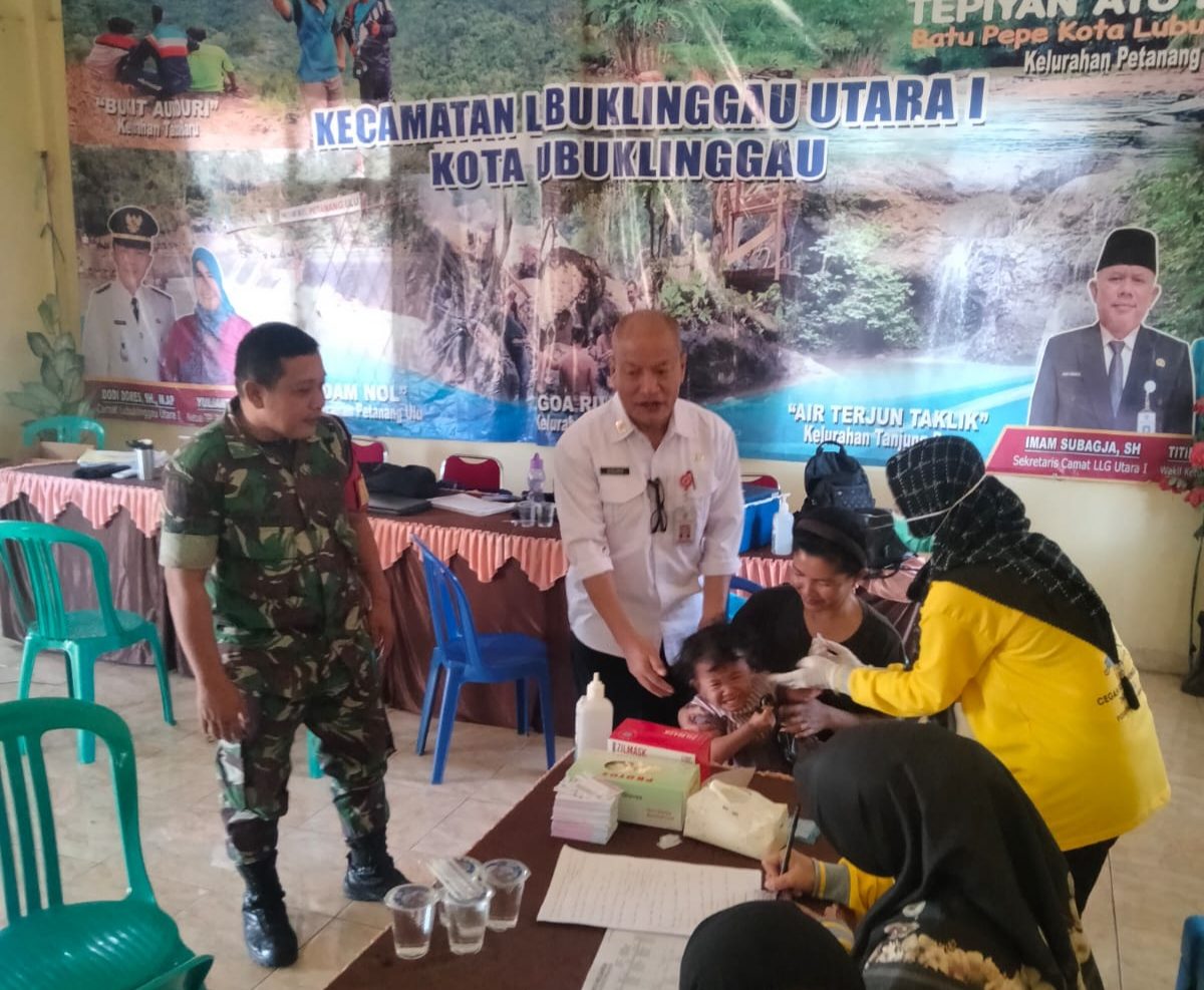 Babinsa Koramil 406-08/Lubuklinggau Sertu Arisyandi Monitoring Kegiatan Pekan Imunisasi Nasional (PIN) Di Pos Pin Kecamatan, Kelurahan Petanang Ilir, Kecamatan Lubuklinggau Utara I